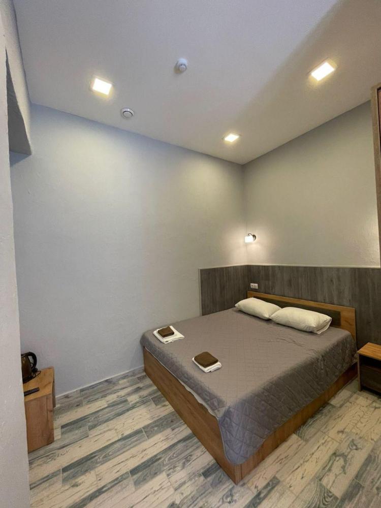 Уютный светлый номер для двоих с собственной ванной комнатой. В номере большая двуспальная кровать, ванная комната с душевой кабинкой, набор полотенец, минипарфюмерии, фен, кондиционер, телевизор, электрический чайник, холодильник. По запросу могут быть установлена детская кроватка для малыша. На территории отеля и в номерах предоставляется бесплатный доступ к WI-Fi.