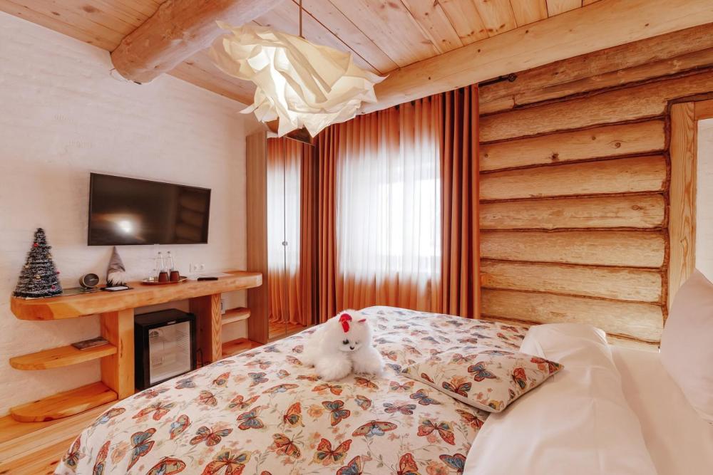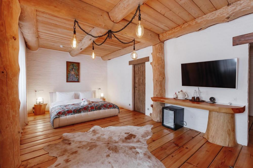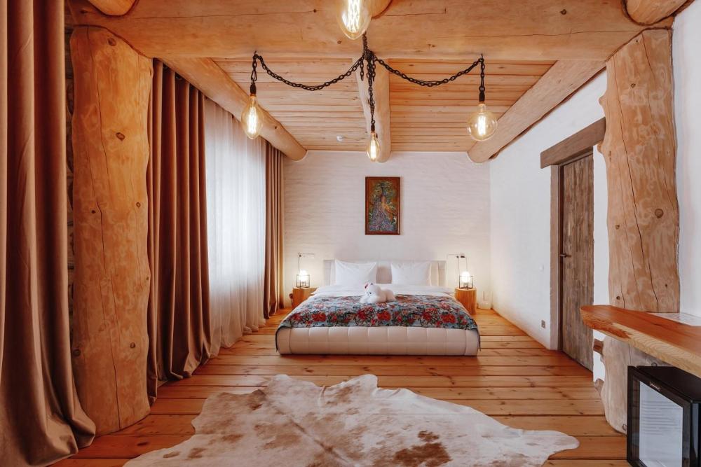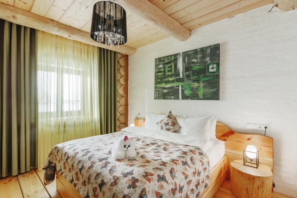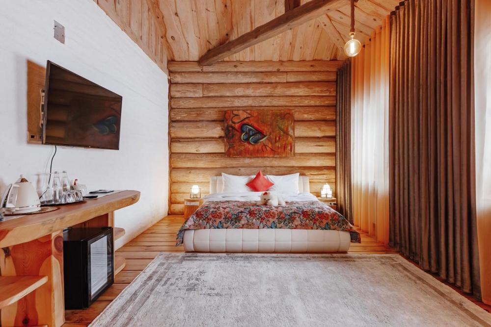 Однокомнатный номер люкс с высоким потолком 5 м, (один номер 2.7 м) с кроватью размера «кинг-сайз» и диваном, для размещения до 3-х гостей (дополнительное место оплачивается отдельно). Номера укомплектованы холодильником, чайником, чайным набором, пушистыми полотенцами togas, тапками и халатами с символикой отеля. В каждом номере имеется свой вай-фай роутер.