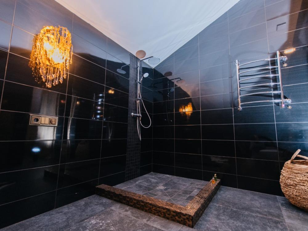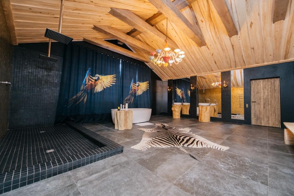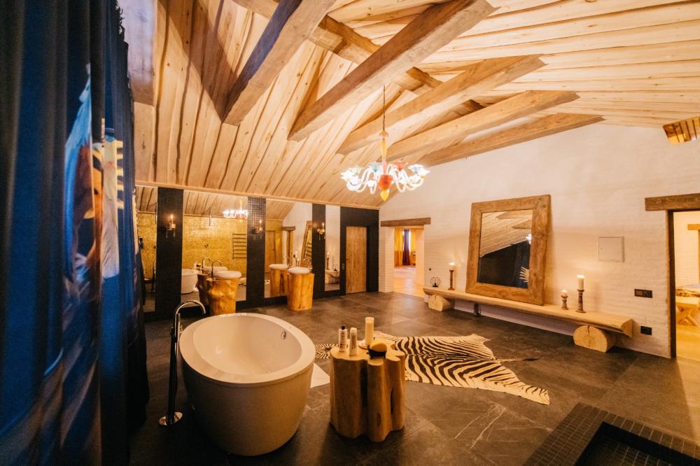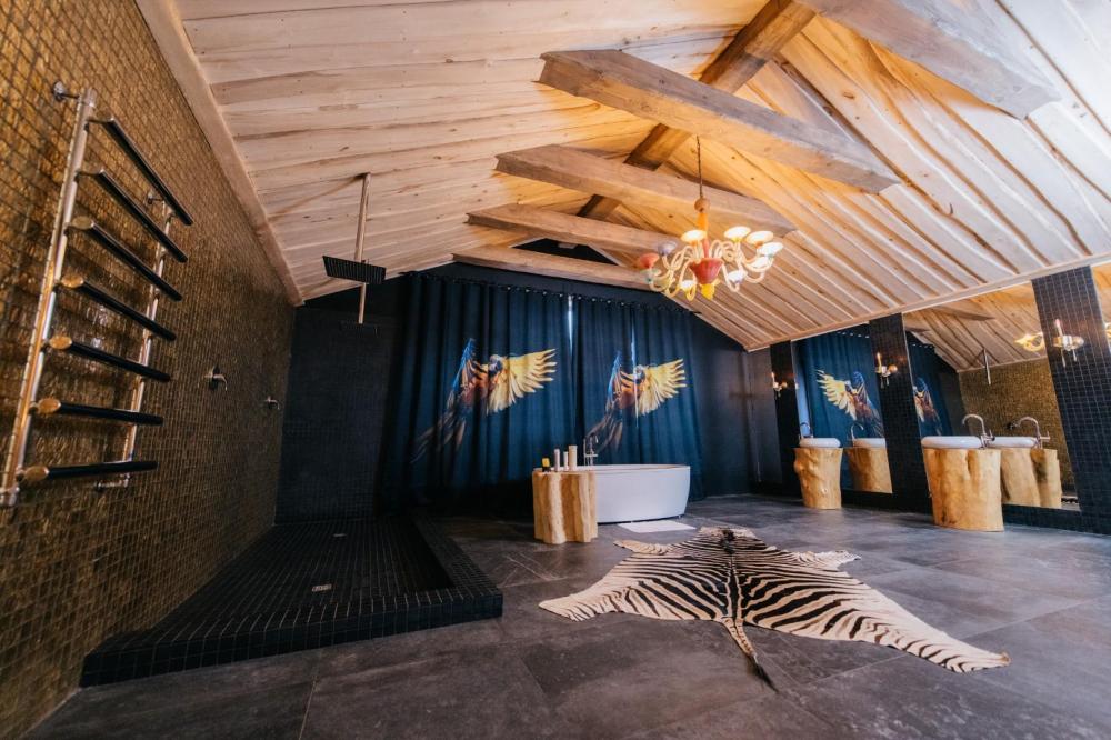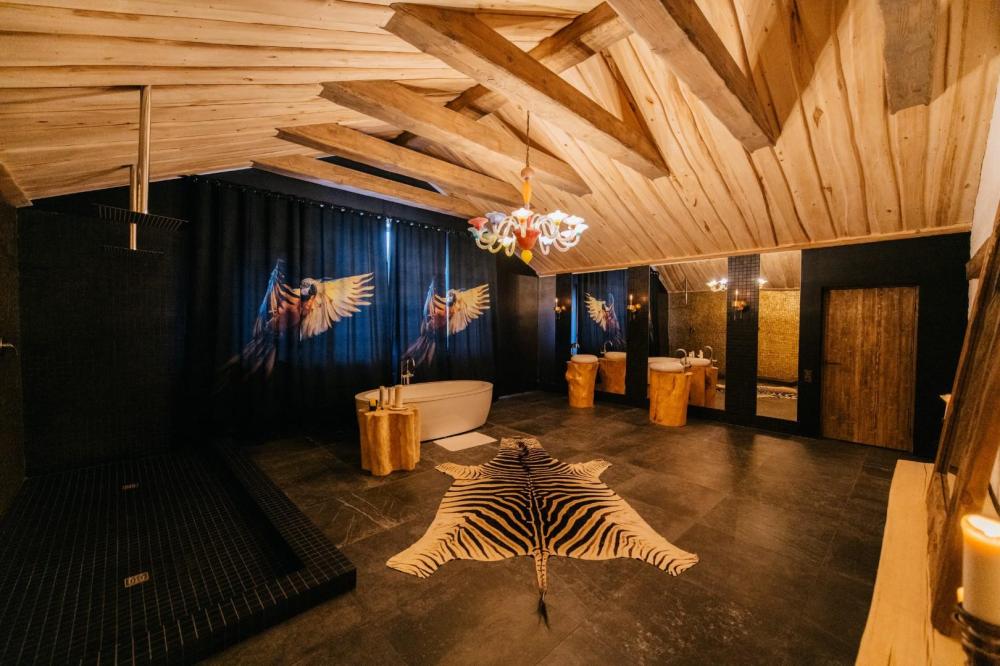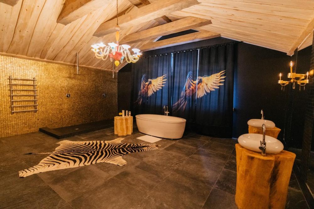Президентский номер люкс, площадью 400 кв.м. для размещения до 6-ти гостей. В номере 3 спальни с двухспальными кроватями, 5 ванных комнат, сауна, гостиная, кухня - гостиная. Этот великолепный номер занимает весь второй этаж отеля. Имеется все для комфортного пребывания: в каждой спальне отдельный санузел и телевизор, кухня оснащена бытовой техникой и полным набором посуды. Имеется собственная сауна, тропический душ и большая ванная. Уникальные предметы интерьера удовлетворит самый взыскательный вкус.