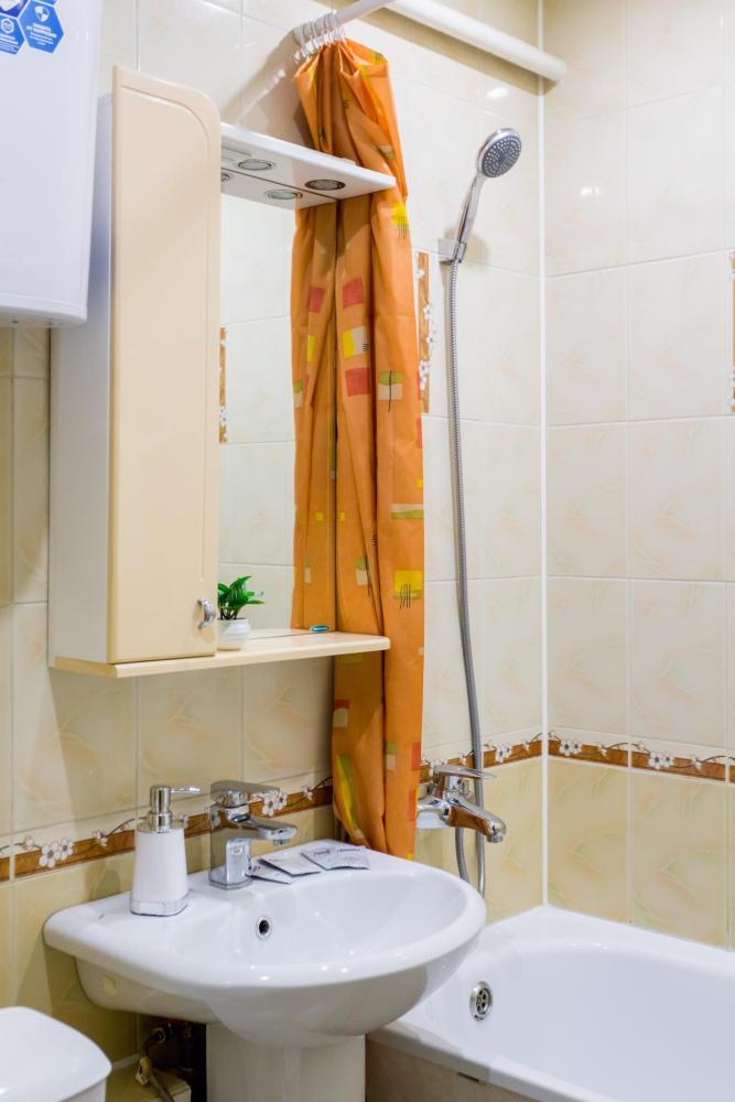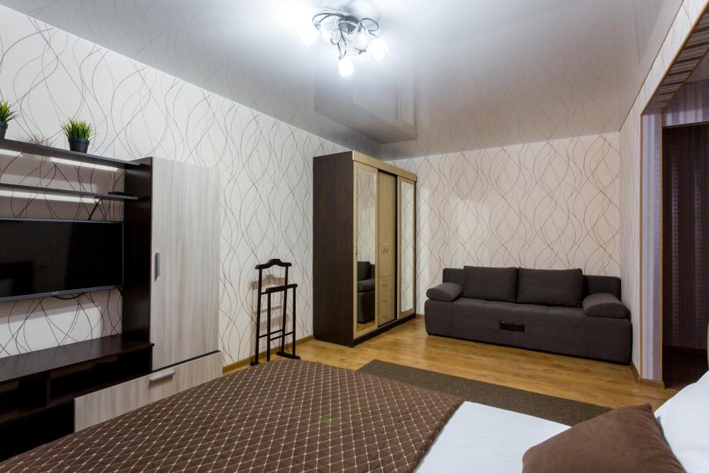 В квартире есть всё необходимое для комфортного проживания: двуспальный диван, раскладушка с ортопедическим матрасом, Wi-Fi, телевизор с кабельным ТВ, ванна, фен, постельное бельё и полотенца (включено в стоимость проживания), сушилка для белья, водонагреватель (на случай отсутствия горячей воды), вентилятор, шкаф. В наличии вся бытовая техника: стиральная машина, микроволновка, чайник, холодильник, электроплита, посуда, утюг, гладильная доска. Приветственный набор для каждого гостя (чай, кофе, сахар, шампунь, гель для душа).