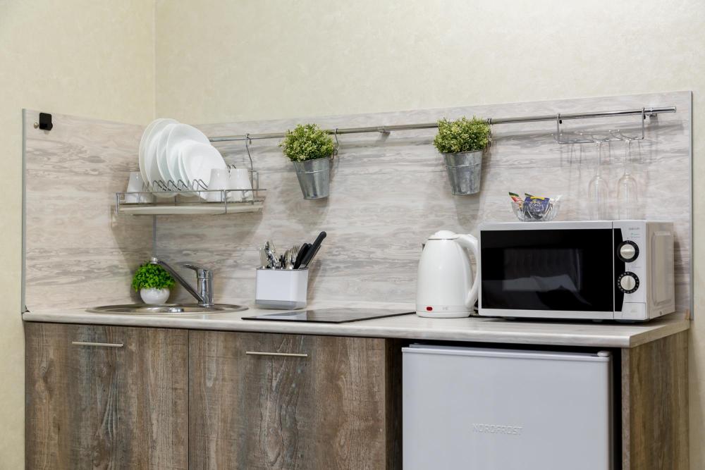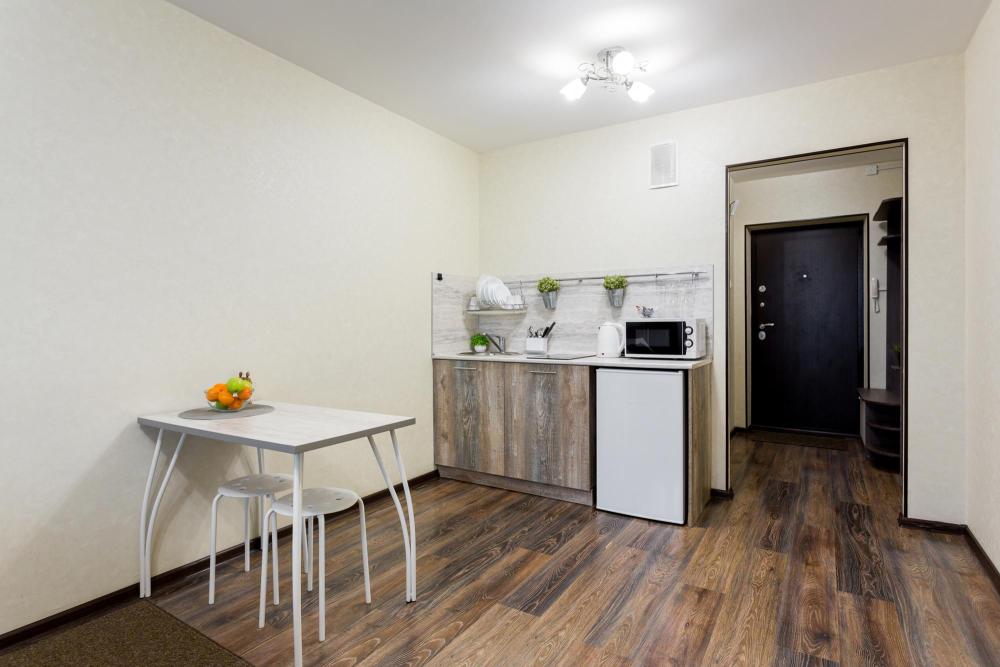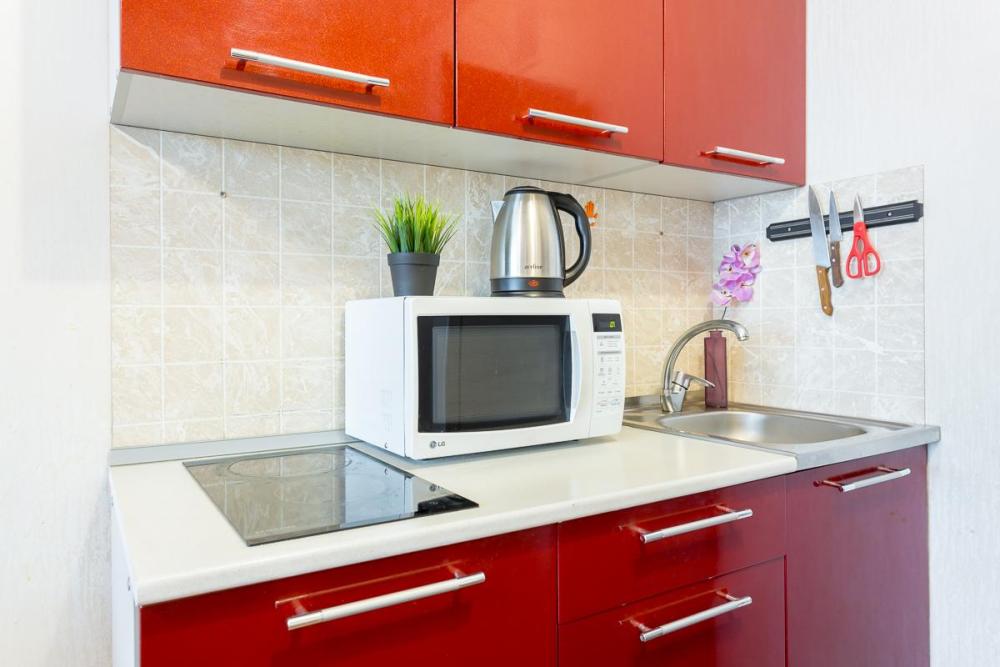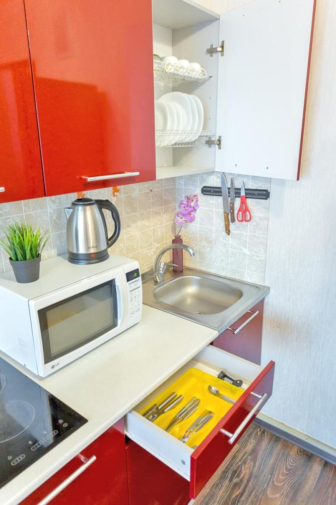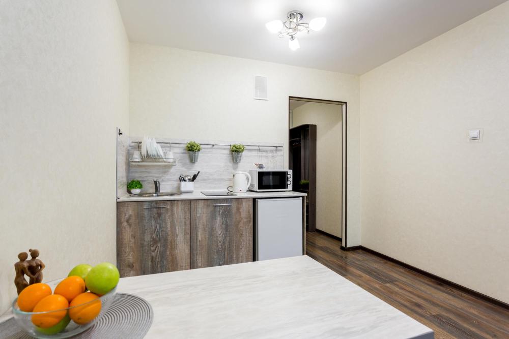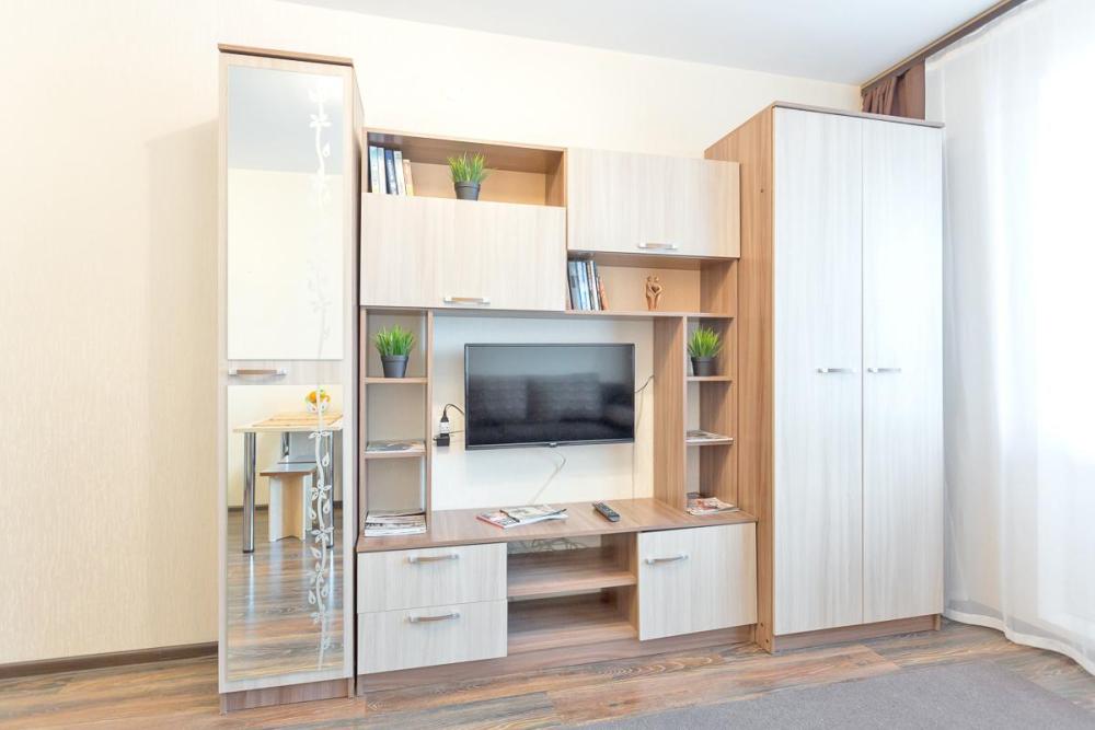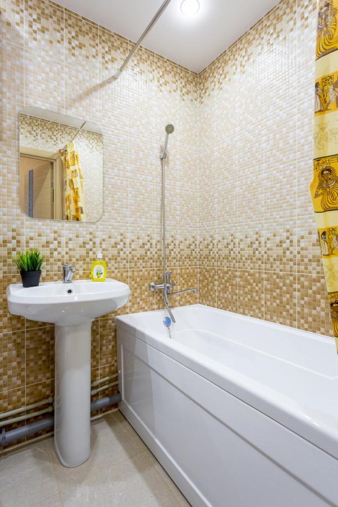 В квартире есть всё необходимое для комфортного проживания: двуспальный диван, раскладушка с ортопедическим матрасом, Wi-Fi, телевизор с кабельным ТВ, акриловая ванна, фен, постельное бельё и полотенца (включено в стоимость проживания), сушилка для белья, водонагреватель (на случай отсутствия горячей воды), вентилятор, шкаф. В наличии вся бытовая техника: стиральная машина, микроволновка, чайник, холодильник, электроплита, посуда, утюг, гладильная доска. Приветственный набор для каждого гостя (чай, кофе, сахар, шампунь, гель для душа).