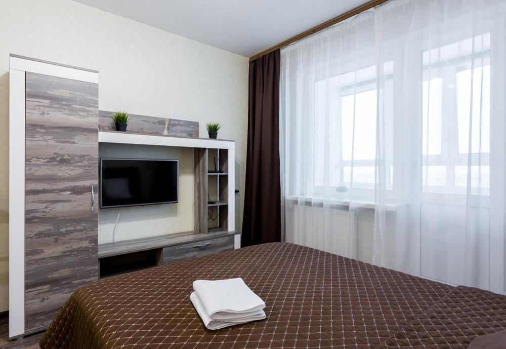 В квартире есть всё необходимое для комфортного проживания: двуспальная кровать с ортопедическим матрасом, Wi-Fi, телевизор с кабельным ТВ, акриловая ванна, фен, постельное бельё и полотенца (включено в стоимость проживания), сушилка для белья, водонагреватель (на случай отсутствия горячей воды), вентилятор, шкаф. В наличии вся бытовая техника: стиральная машина, микроволновка, чайник, холодильник, электроплита, посуда, утюг, гладильная доска. Приветственный набор для каждого гостя (чай, кофе, сахар, шампунь, гель для душа). В квартире видовая лоджия.