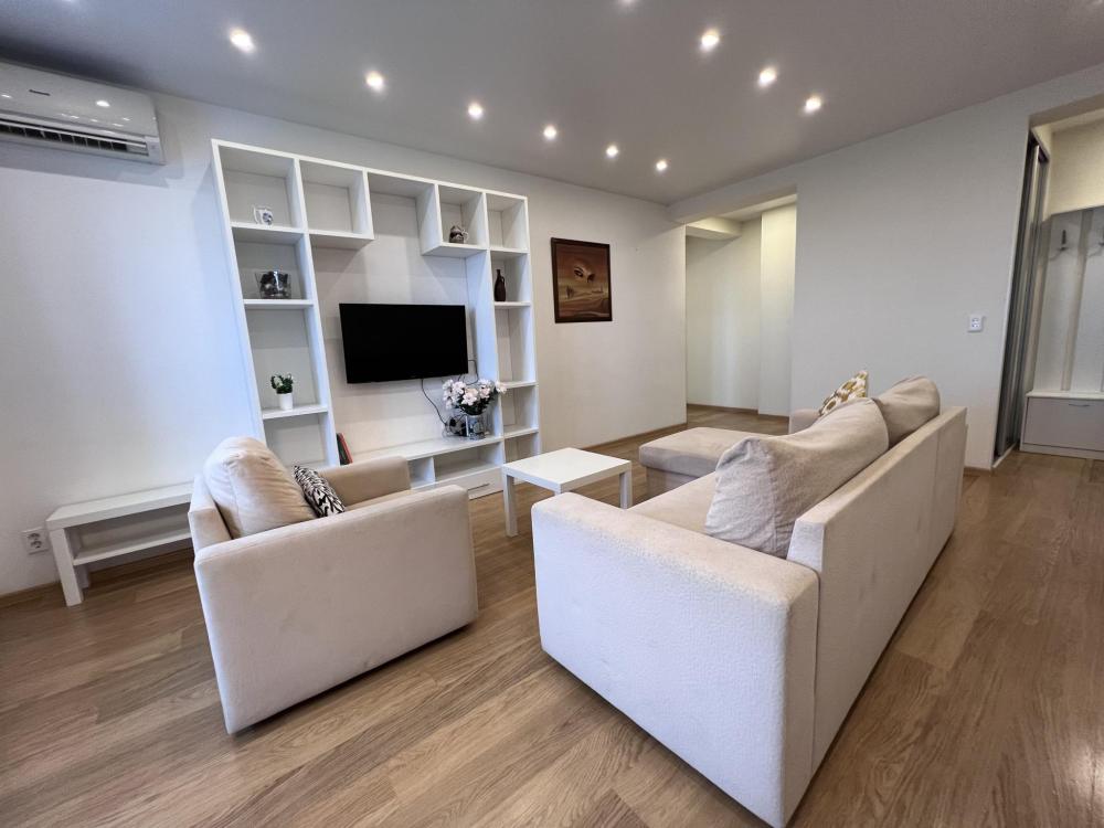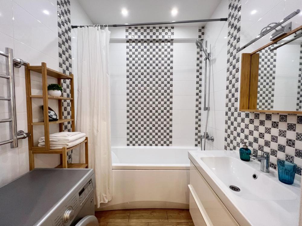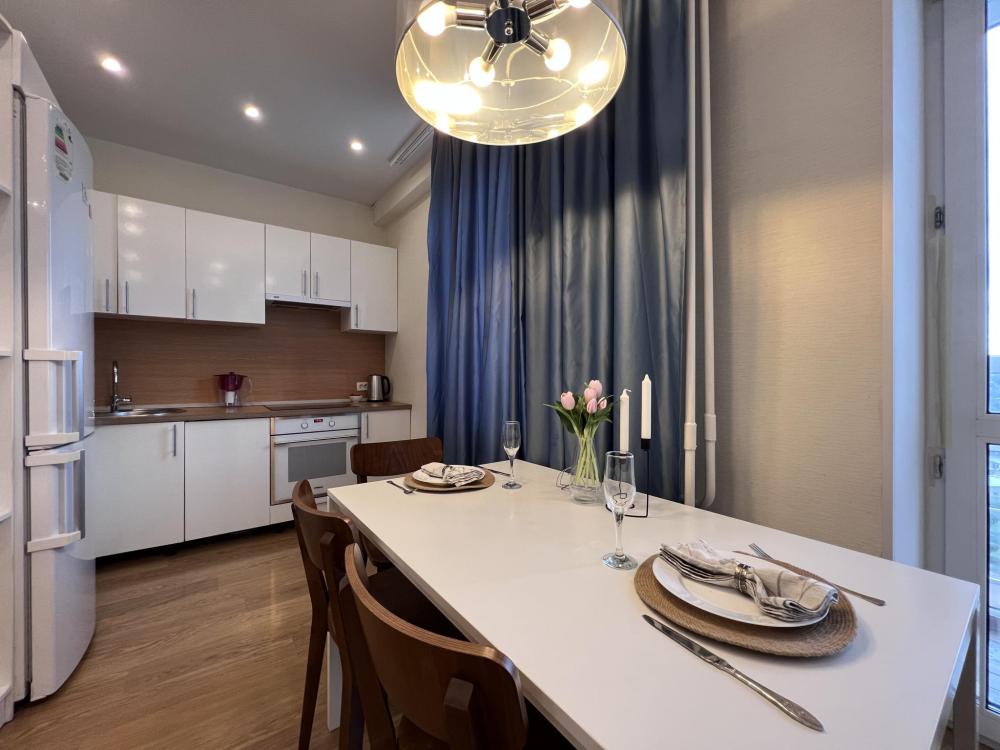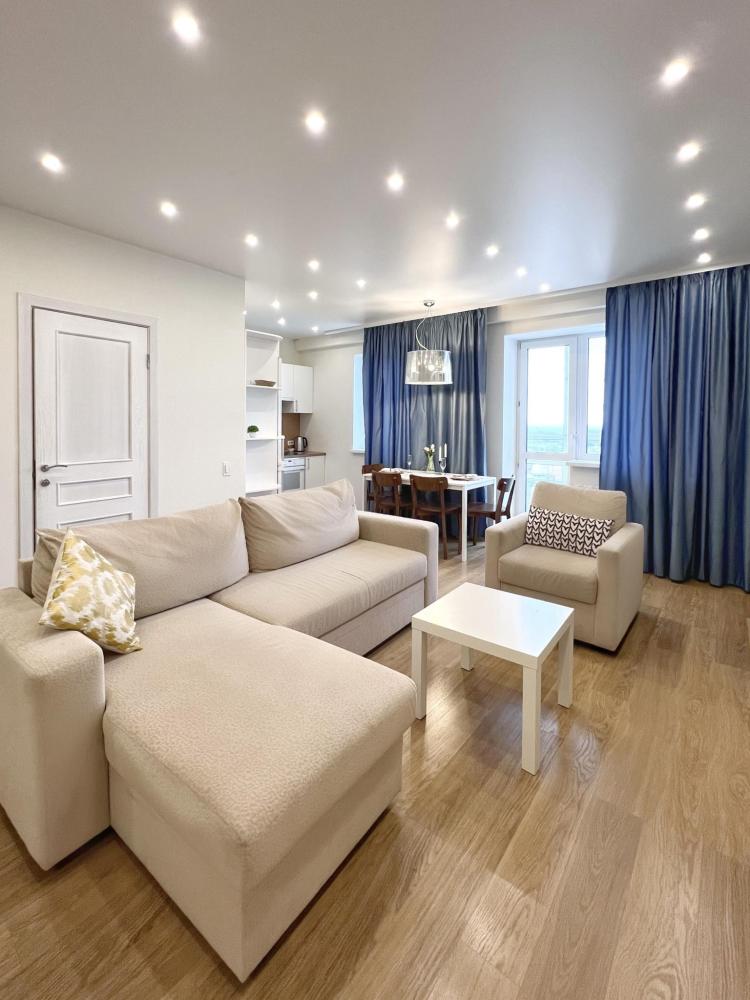 В апартаментах Спальные места 2+2 (кровать/диван). Оборудованная кухня со всем необходимым - варочная панель, духовой шкаф, микроволновая печь, вытяжка, эл. чайник, набор посуды для приготовления пищи (сковорода, кастрюли, а также приборы), посуда на 4 персоны и столовые приборы. Спальня и гостиная двуспальная кровать с ортопедическим матрасом, кабельное ТВ, двуспальный диван, Wi-Fi интернет, набор подушек 7070 и одеял, утюг, гладильная доска, сушилка для белья, фен и стиральная машина. Постельное белье мы не застилаем, а предоставляем в упаковке. Нам важно, чтобы вы были убеждены в его чистоте. Полотенца (банные и для рук); Душевые наборы для каждого гостя.