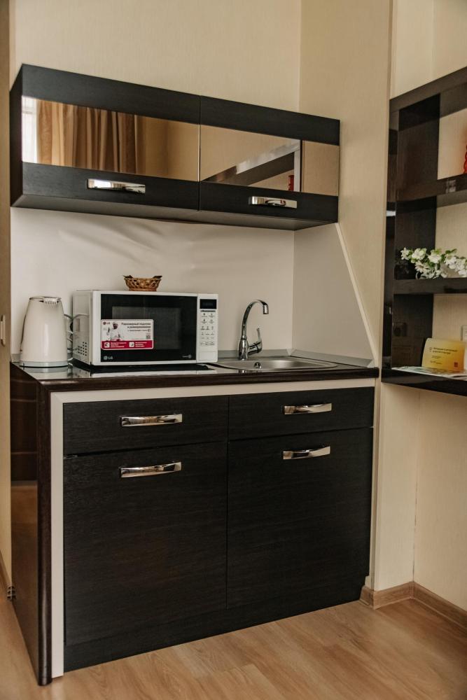 Двухкомнатный Люкс с Кухонной Зоной в «Вятских улочках». Наш просторный двухкомнатный люкс - идеальный выбор для длительных командировок, романтических выходных или семейного отдыха. Насладитесь домашним уютом, функциональностью и комфортом вдали от дома. В номере: - Уютная Спальня: Роскошная двуспальная кровать, рабочий стол, прикроватные тумбочки, кабельное ТВ, несколько сценариев освещения. - Функциональная Гостиная-Кухня: Полностью оборудованная кухонная зона (микроволновая печь, холодильник, посуда), современный телевизор, мягкий диван, торшер. -Ванная Комната: Стильная ванная с гигиеническими и банными принадлежностями. -Просторная Прихожая: Вместительный шкаф. -Бесплатный высокоскоростной WI-FI. Забронируйте сейчас и оцените наше гостеприимство! Завтрак входит в стоимость номера!