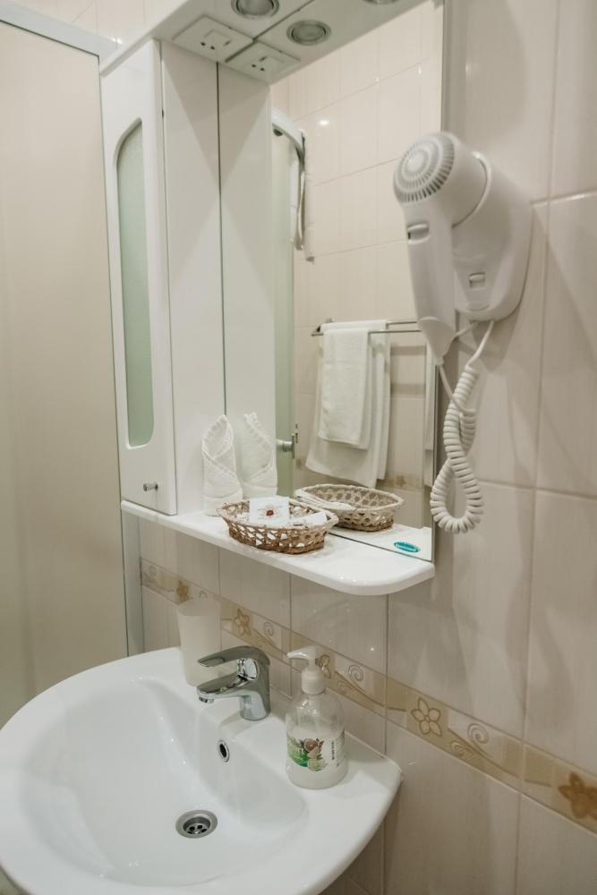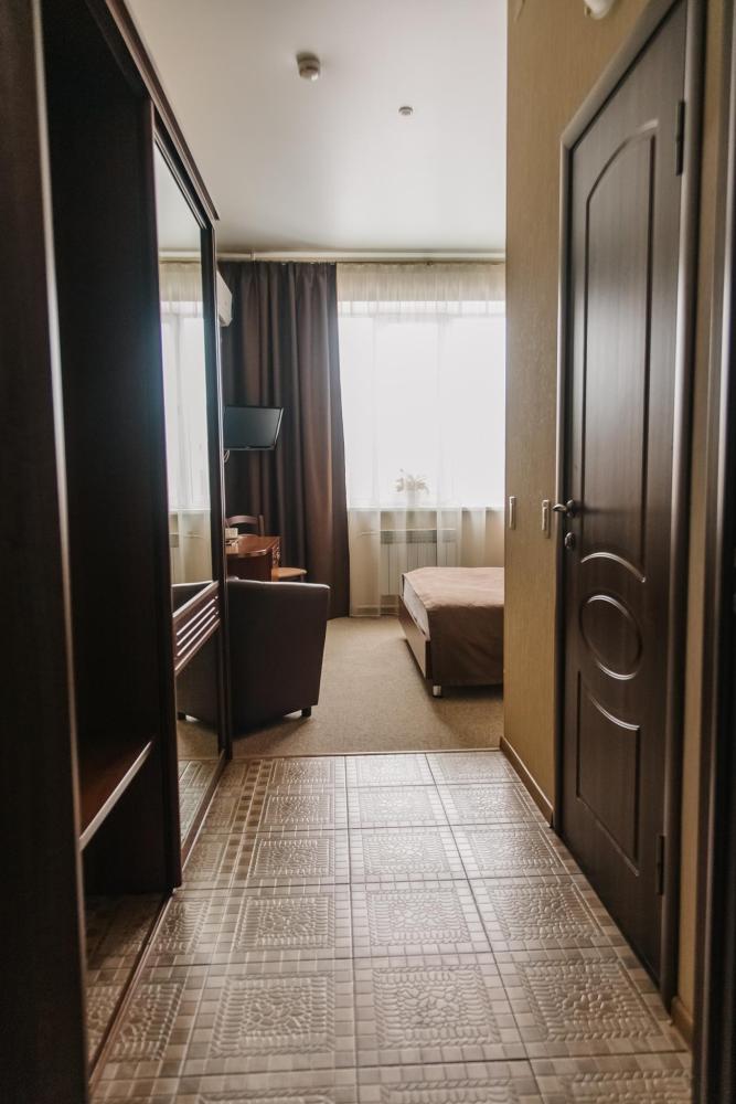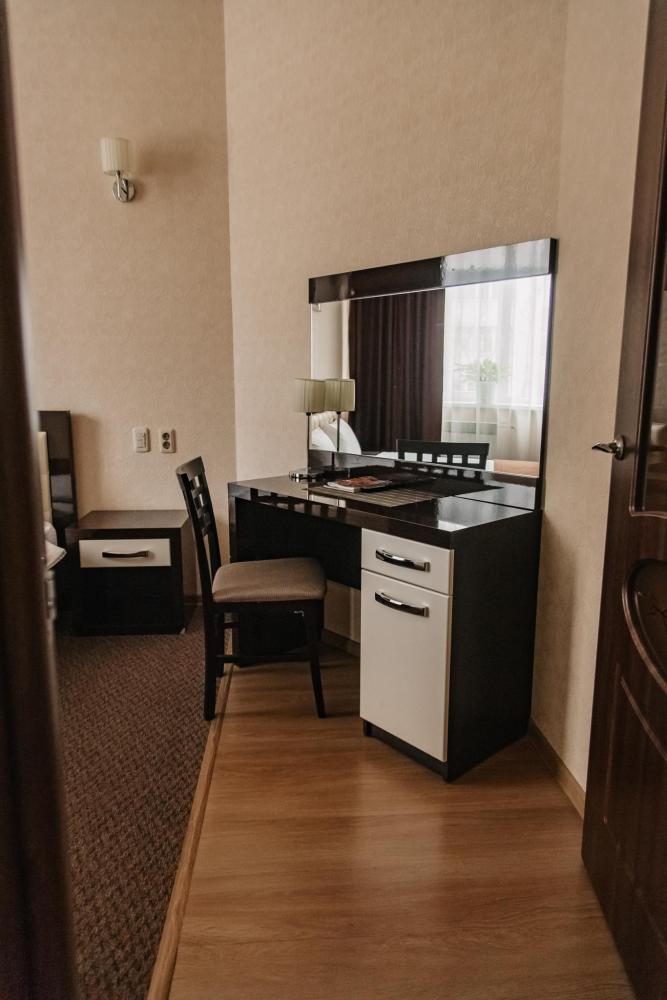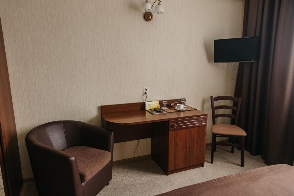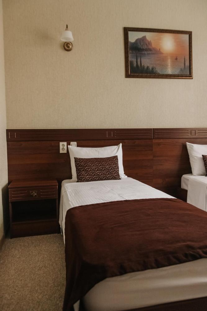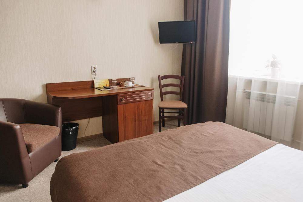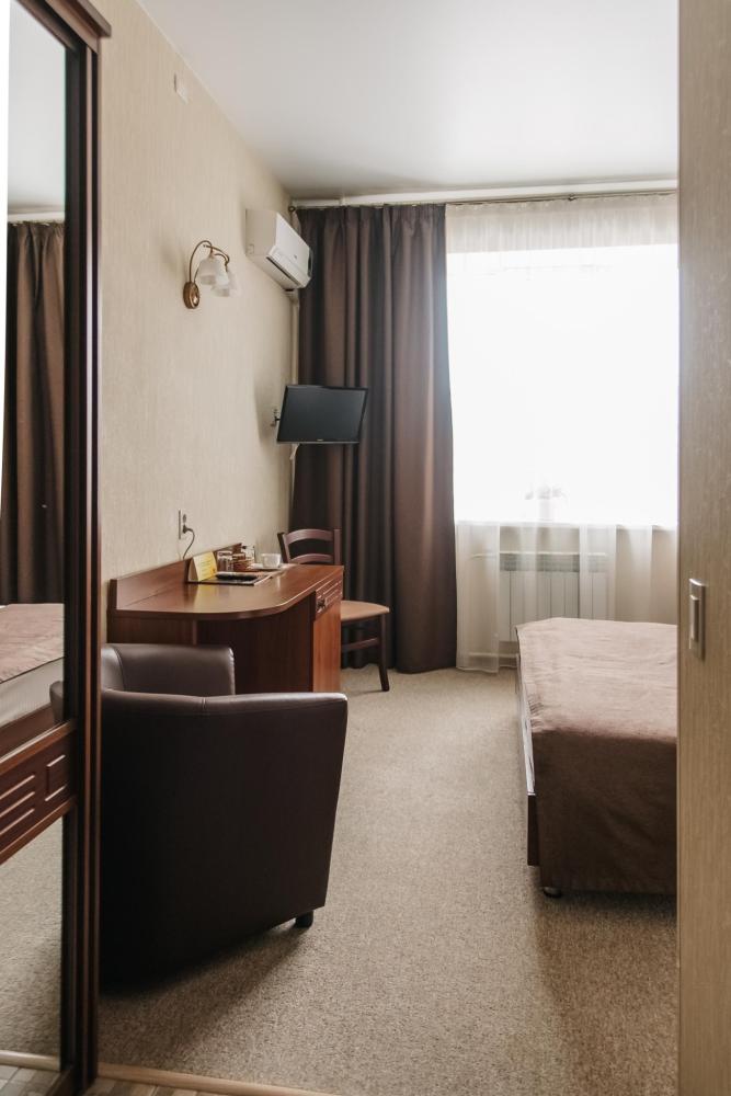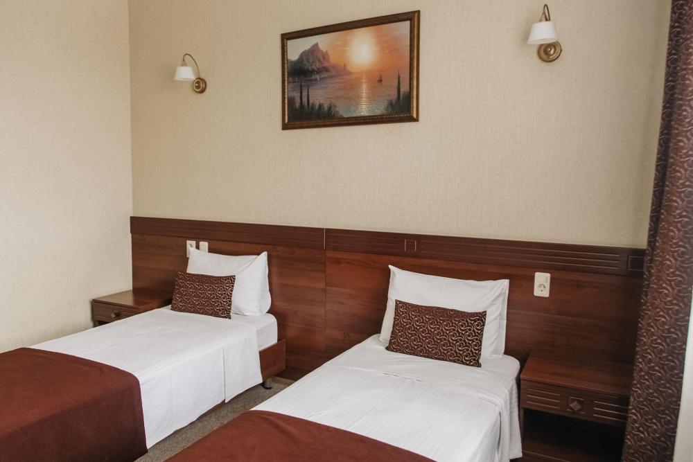 В номере: комфортная комната 17 м², WI-FI (бесплатный), две односпальные кровати, деловая зона: письменный стол, кресла, ЖК телевизор, холодильник, кабельное телевидение, ванная комната с банными принадлежностями, фен.