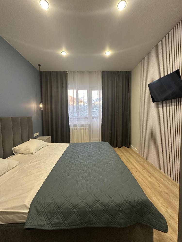 Трехкомнатные апартаменты рассчитаны для комфортного пребывания 6 человек. В апартаментах имеется вся необходимая для жизни бытовая техника, а так же посудомоечная машина и бойлер. Спальные места: две двуспальные кровати, раскладной диван.