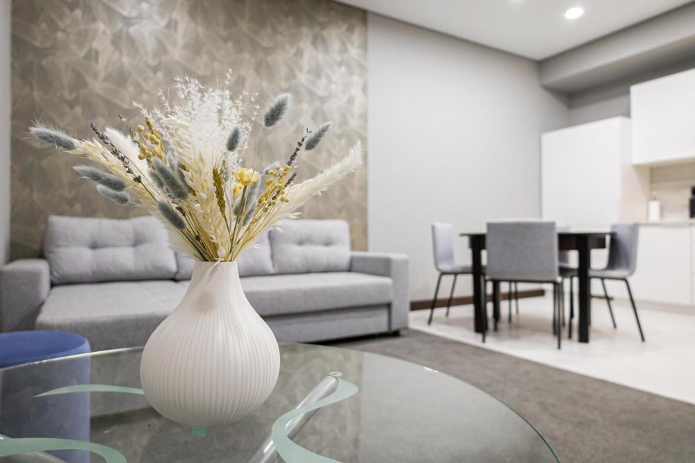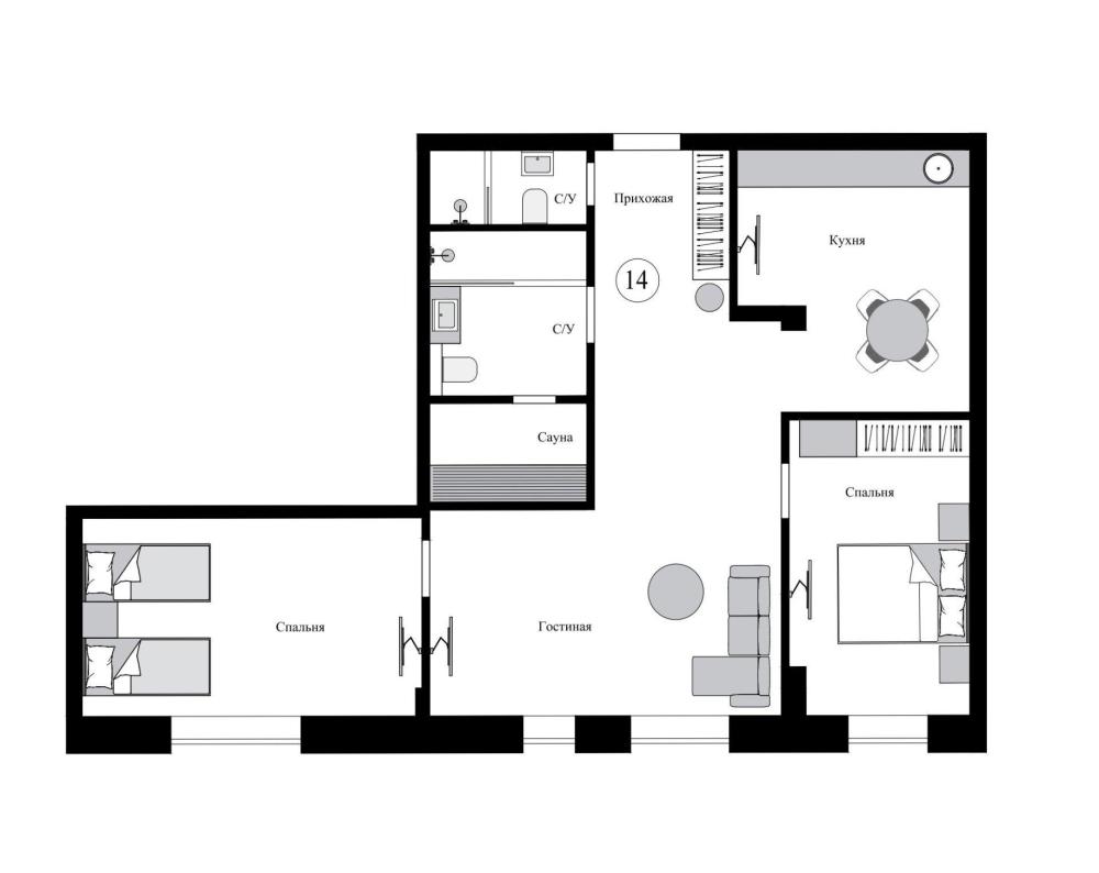 Апартаменты Премьер 014. Стильный номер представительского класса. Располагает просторной гостиной, совмещенной с кухней, 2 спальнями, отдельной ванной комнатой с сауной и дополнительной гостевой ванной комнатой. Услуги в номере: Умная колонка Яндекс Станция Лайт с Алисой, кабельное ТВ, кухонные принадлежности, варочная панель, духовой шкаф, посудомоечная машина, стиральная машина, чайная станция, микроволновая печь, кондиционер, сейф, гладильная доска, утюг, халат, тапки, фен, полотенца, сауна, Wi-Fi. Обращаем Ваше внимание на то, что некоторые декоративные элементы не предоставляются в базовой комплектации и размещены в номерах исключительно для фотографий.