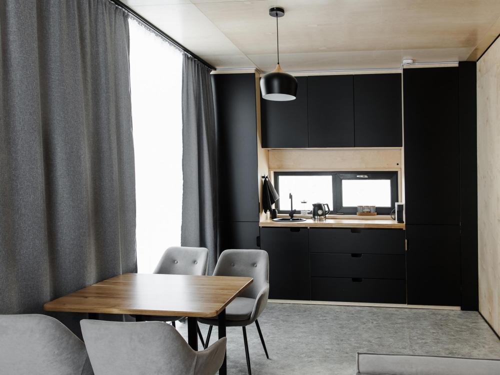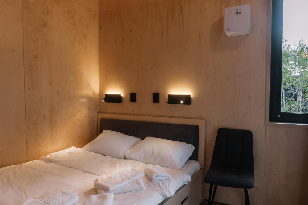Коттедж "Тундра" — дом с двумя изолированными спальнями и кухней-гостиной. Отлично подходит для семьи с детьми. Комфортная вместимость дома — до 4 гостей ( 2+2), максимальная 6 человек ( 2+2+ раскладной диван).