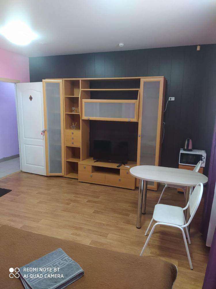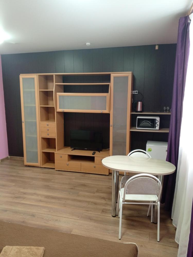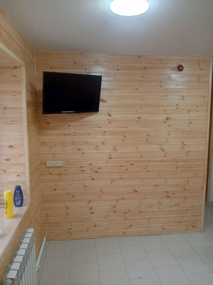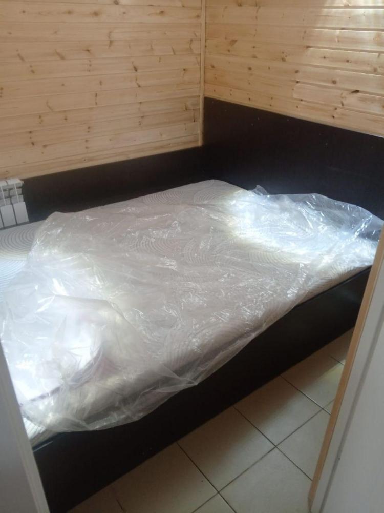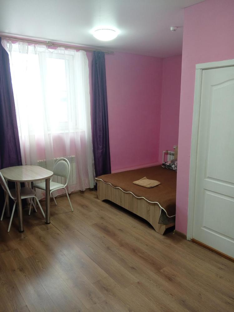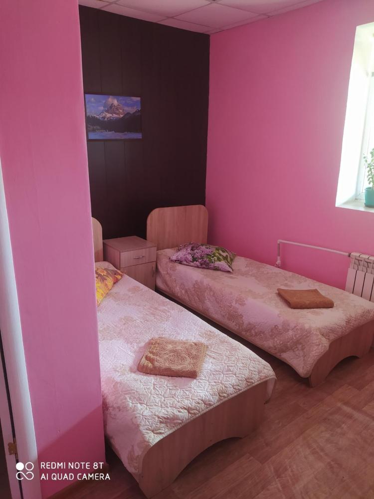 Однокомнатный номер с двухспальной кроватью. Мебель: стул, стулья, стенка, шкаф, тумбочки. Телевизор, холодильник, чайник, микроволновая печь. Туалет с душем в номере.