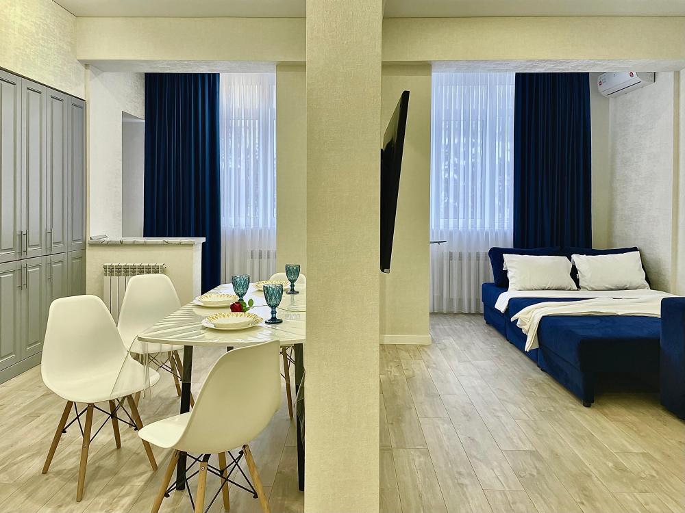 1-комнатные апартаменты стандарт В квартире есть абсолютно всё для комфортного проживания: мебель, необходимая техника, постельное бельё.