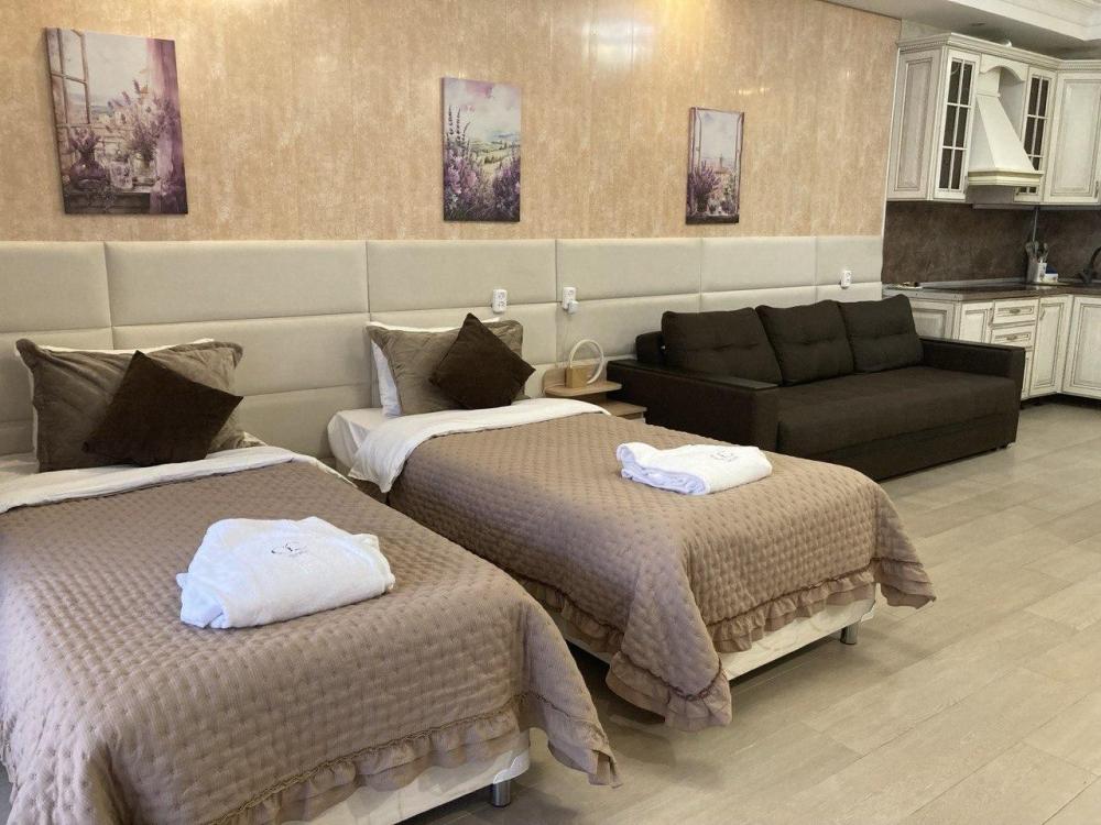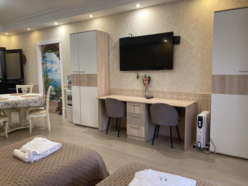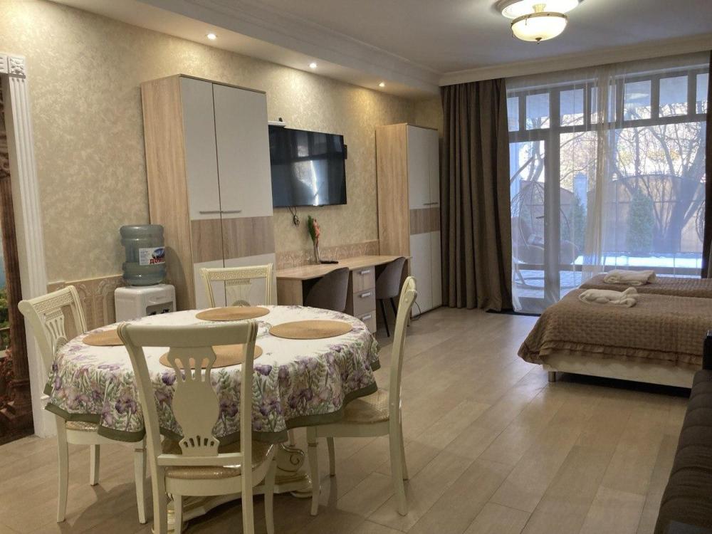 Предлагаем вам уютную квартиру-студию в живописном городе-курорте Кисловодск, расположенную в тихом районе с приятным зеленым двором. Просторная студия оборудована всем необходимым для комфортного проживания: функциональная мебель, современная техника и стильный интерьер создают атмосферу домашнего тепла и спокойствия. Особенностью является удобный выход прямо на задний двор дома, позволяющий наслаждаться свежим воздухом. Здесь вы сможете расслабиться после насыщенного дня прогулок по городу или лечебных процедур в местных санаториях. В квартире есть: две односпальные кровати боксы , позволяющие совместить кровати в одну двуспальную. Диван раскладывающийся в двуспальную кровать И так же всё необходимое для комфортного проживания. Идеально подойдет как для краткосрочного отдыха, так и для длительного пребывания. Квартира станет прекрасным выбором для тех, кто ценит комфорт, удобство и близость к природе. Вас ждут приятные впечатления и незабываемые моменты в одном из лучших уголков Кавказских Минеральных Вод!