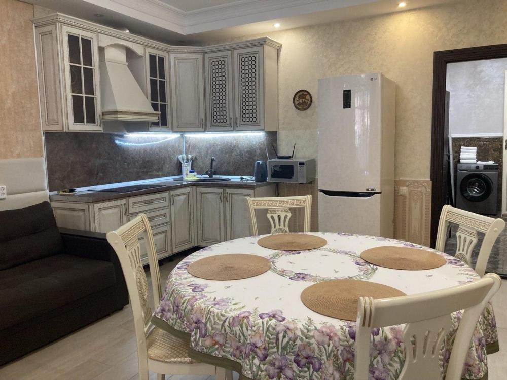 Представьте себе уютную трехкомнатную квартиру в живописном уголке Кисловодска, расположенном вдали от шума центра, но достаточно близко ко всем необходимым объектам инфраструктуры. Это идеальное жилье для тех, кто ценит комфорт и спокойствие. ▌ Основные характеристики апартаментов: - Площадь: Общая площадь составляет 96 квадратных метров, что позволяет комфортно разместиться семье из нескольких человек или группе друзей. - Планировка: - Просторная гостиная с большим окном, выходящим на живописный вид. - Две спальни с удобной мебелью и качественным постельным бельем. - Современная кухня оборудована всей необходимой техникой: холодильник, плита, микроволновая печь, чайник, кофеварка. - Санузел оснащен душевой поддон, стиральная машинка, феном и набором полотенец. - Интерьер: Интерьер выполнен в светлых оттенках, создавая атмосферу тепла и уюта. - Комфорт: Для вашего удобства предусмотрены кондиционеры, Wi-Fi, телевизоры с кабельными каналами, стиральная машина, утюг и гладильная доска. - Безопасность: Территория огорожена, имеется парковочное место для автомобиля. - Инфраструктура: Рядом расположены магазины, аптеки, кафе и рестораны, спортивные площадки и зоны отдыха. Эти апартаменты станут идеальным выбором для тех, кто ищет спокойный отдых среди природы, наслаждаясь всеми благами цивилизации.