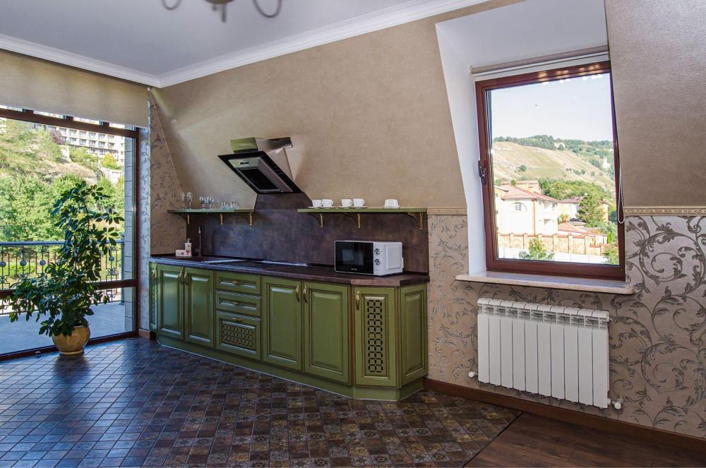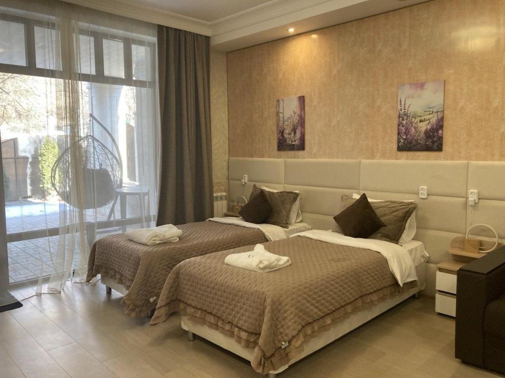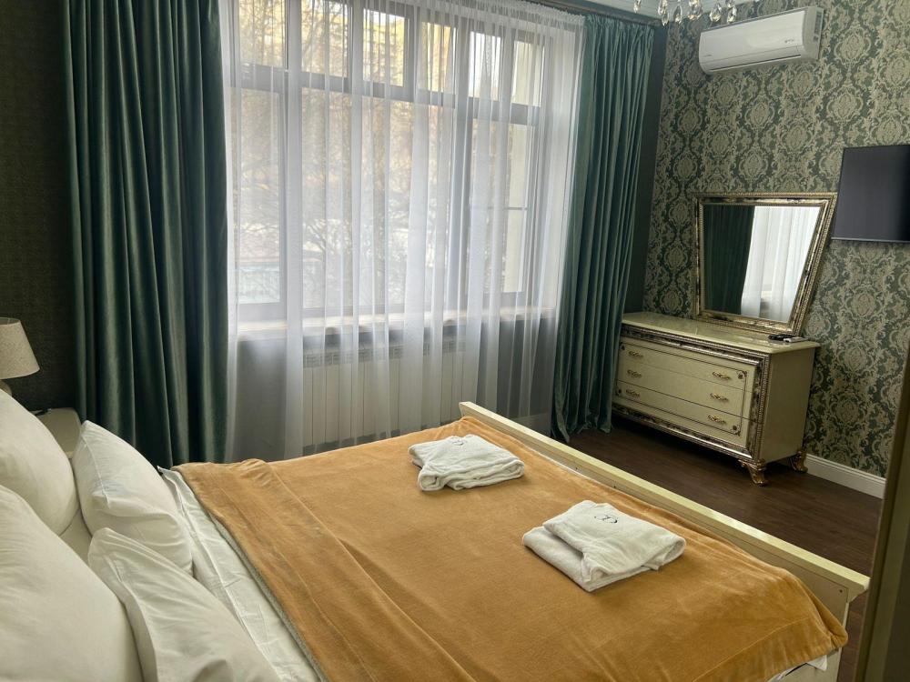 Предлагаем вашему вниманию уютную и просторную двухкомнатную квартиру в городе-курорте Кисловодск, расположенную в одном из лучших районов города. Это идеальное жилье для тех, кто ценит комфорт, тишину и близость к природе. ▌ Основные характеристики: - Планировка: - Просторная гостиная с большим панорамным окном, раскладным диваном, двуспальной кроватью, телевизором и детской кроваткой. - Спальня с двуспальной кроватью, шкафом, телевизором и туалетным столиком. - Современная кухня оборудована всей необходимой техникой: холодильник, плита, микроволновая печь, чайник, кофеварка. - Санузел оснащен душевой кабинкой, феном, разовой косметикой, и набором полотенец. - Комфорт: Для вашего удобства предусмотрены кондиционеры, Wi-Fi, телевизоры с кабельными каналами, стиральная машина, утюг и гладильная доска. - Безопасность: Территория огорожена, имеется парковочное место для автомобиля. ▌ Интерьер и дизайн: Интерьер выполнен в светлых тонах, что создает ощущение простора и свежести. ▌ Окружающая инфраструктура: - Развитая транспортная доступность - Магазины, аптеки, кафе и рестораны находятся поблизости - Удобства для прогулок и занятий спортом Эта квартира станет идеальным выбором для тех, кто ищет спокойный отдых среди природы, наслаждаясь всеми благами цивилизации.