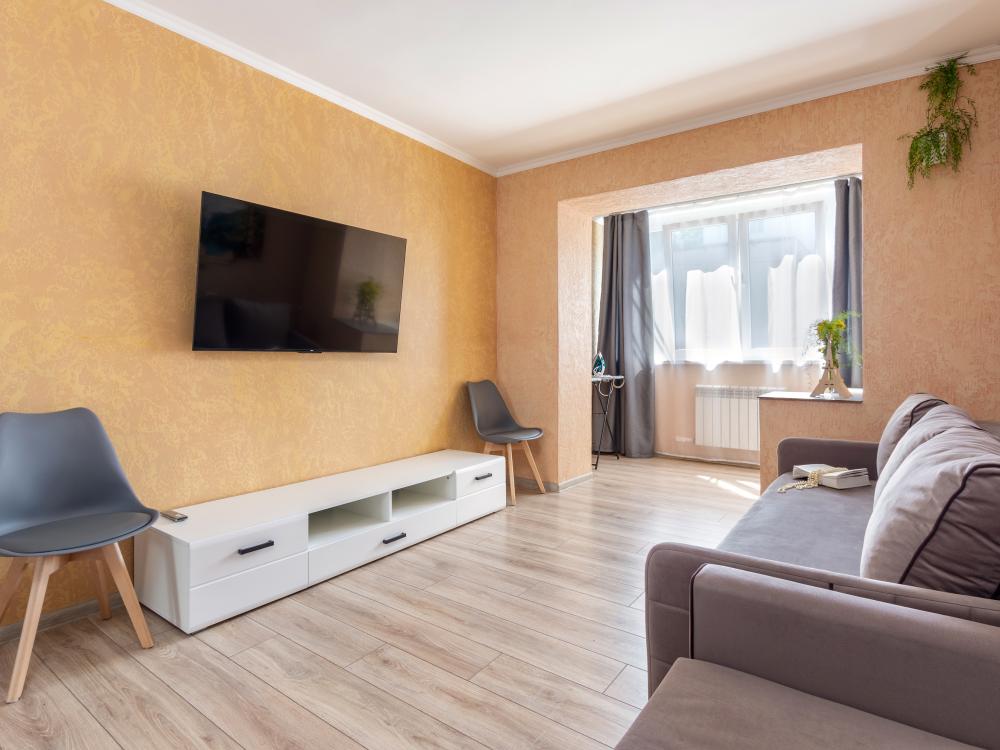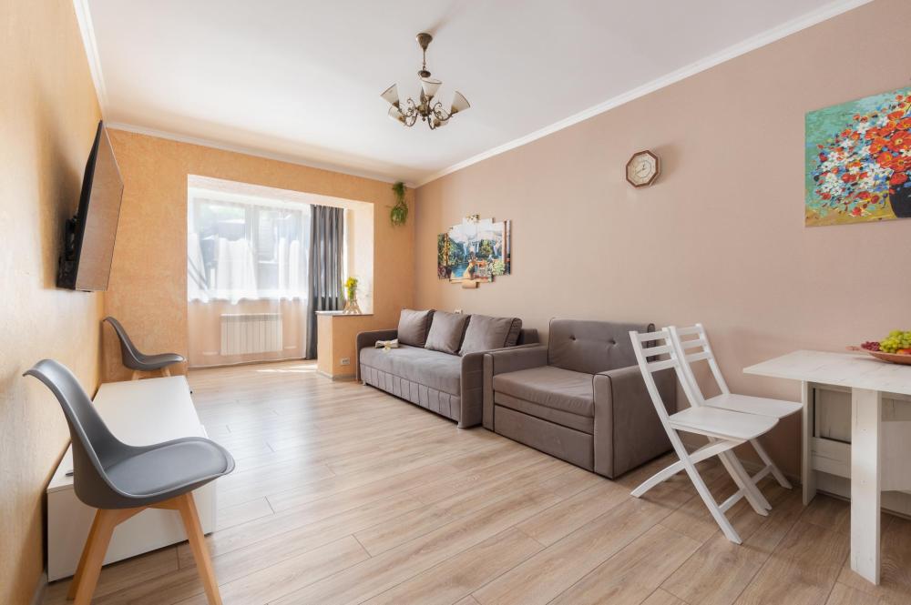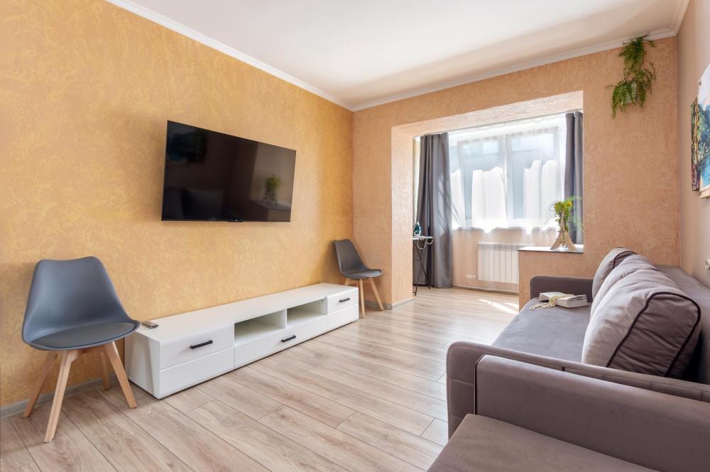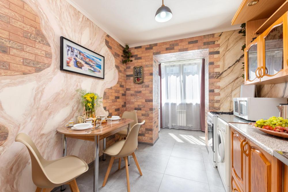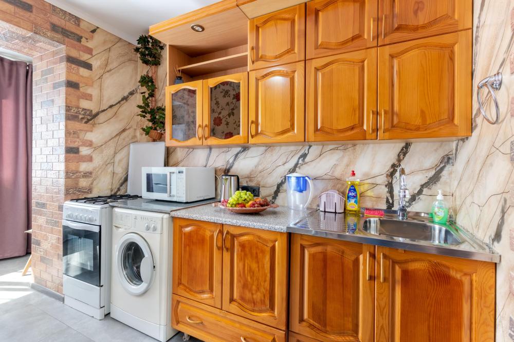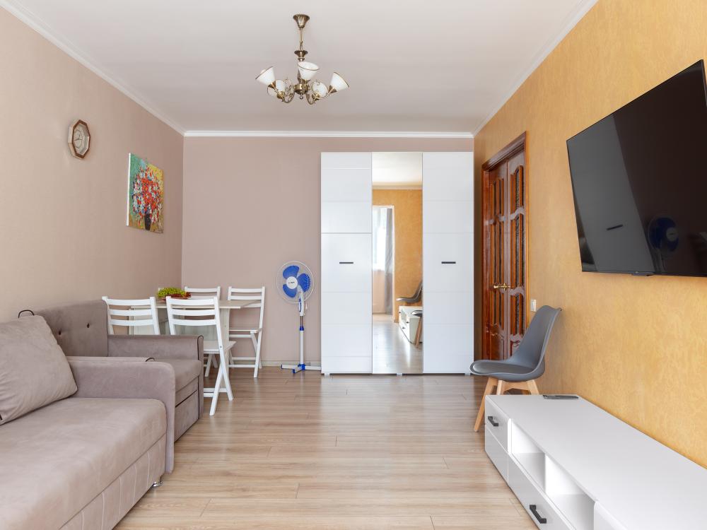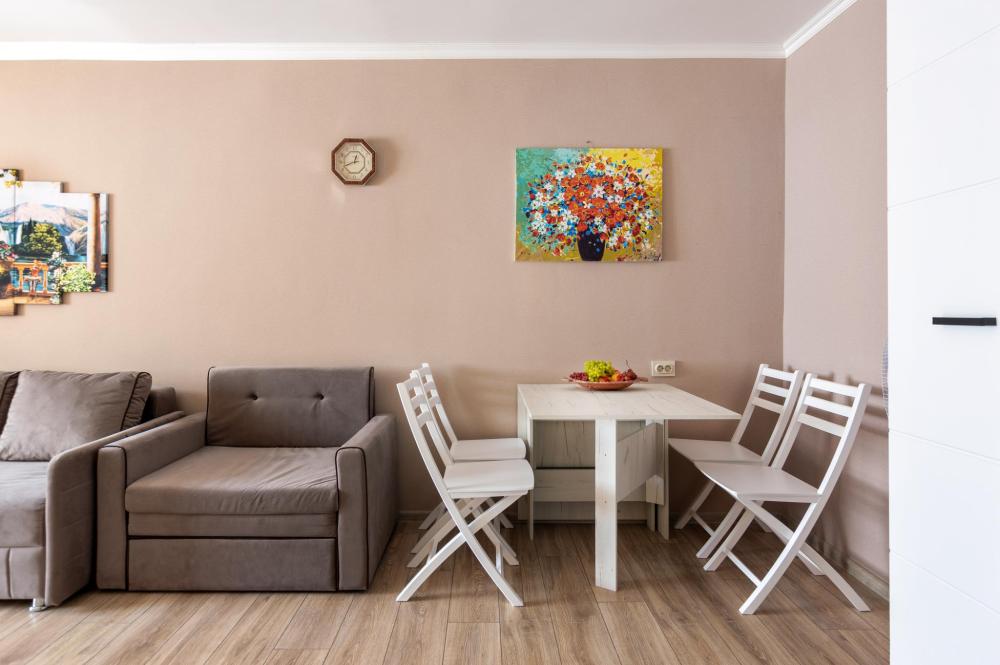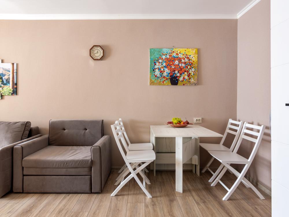 Двуспальная кровать, раскладной диван, телевизор, беспроводной интернет. Полностью оборудованная кухня с техникой: холодильник, плита, микроволновая печь, чайник, посуда, обеденная зона. Современная ванная комната, стиральная машина, гигиенические принадлежности. Предоставляется постельное белье и полотенца.