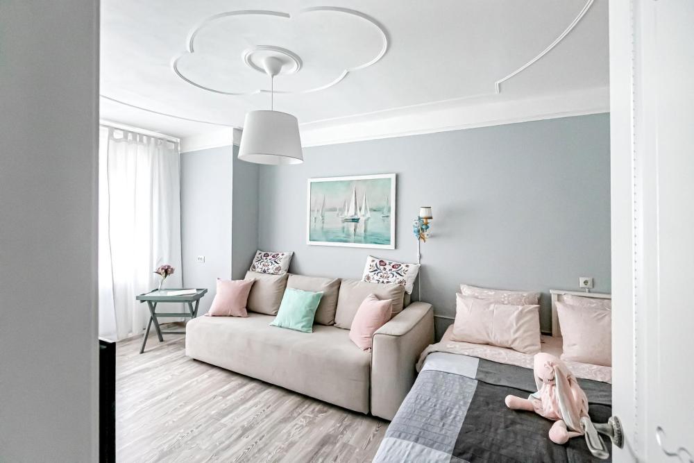 Апартаменты подойдут для размещения 4 человек. Спальные места: двуспальная кровать с ортопедическим матрасом 160*200, раскладной диван 160*200. Есть все необходимое для комфортного проживания. Бытовая техника: телевизор с ТВ приставкой и высокоскоростной Wi-Fi, роутер, утюг, стиральная машина, фен. На кухне: холодильник, газовая плита, микроволновая печь, электрический чайник, посуда и столовые приборы. Постельное белье, полотенца, гладильная доска, сушка и мыльные принадлежности: мыло, гель для душа, шампунь предоставляются. Есть возможность бесплатно парковаться на придомовой территории.