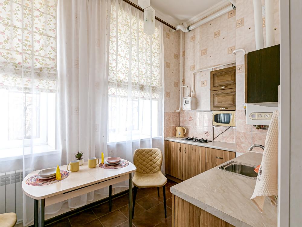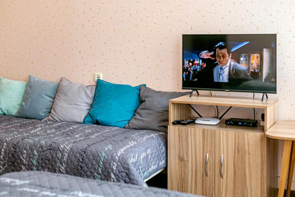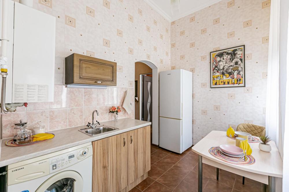 Апартаменты подойдут для размещения 3 человек. Спальные места: двуспальная кровать с ортопедическим матрасом, односпальная кровать с ортопедическим матрасом. Есть все необходимое для комфортного проживания. Бытовая техника: телевизор с ТВ приставкой и высокоскоростной Wi-Fi, роутер, утюг, стиральная машина, фен. На кухне: холодильник, газовая плита, мультиварка, микроволновая печь, электрический чайник, посуда и столовые приборы. Постельное белье, полотенца, гладильная доска, сушка и мыльные принадлежности: мыло, гель для душа, шампунь предоставляются. Есть возможность бесплатно парковаться на придомовой территории.