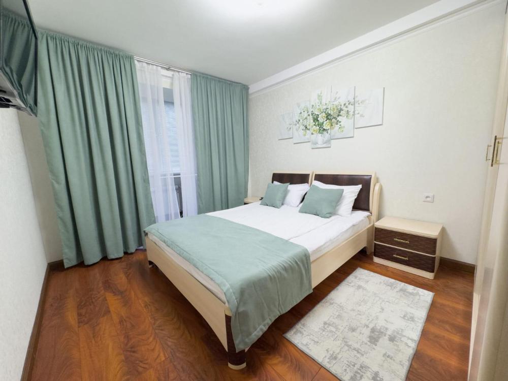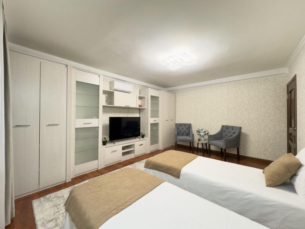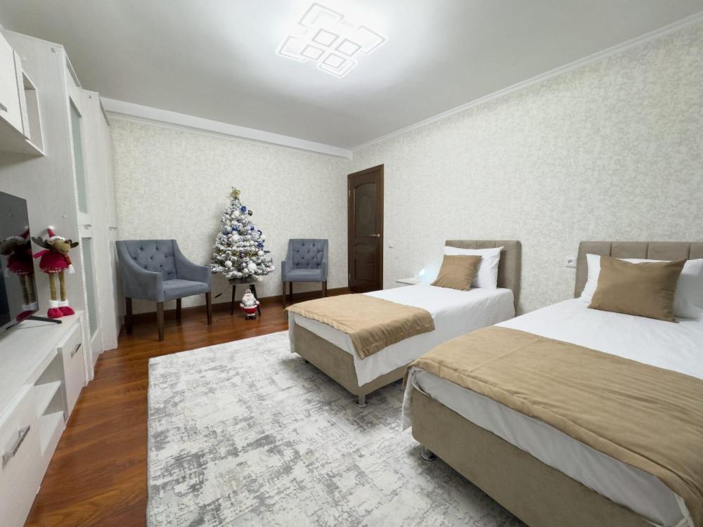 Уютная квартира с евроремонтом, вся мебель новая, удобный анатомический матрас на двухспальной кровати не оставит вас равнодушным. В другой комнате две мягкие кровати Бокс Спринги, которые в случае надобности превращаются в одну двуспальную кровать с помощью механизма. На кухне большое мягкое кресло -кровать. В квартире есть все для комфортного проживания
