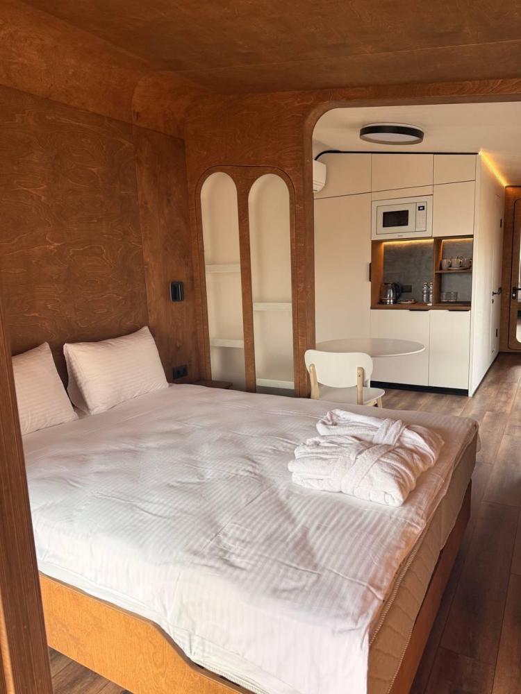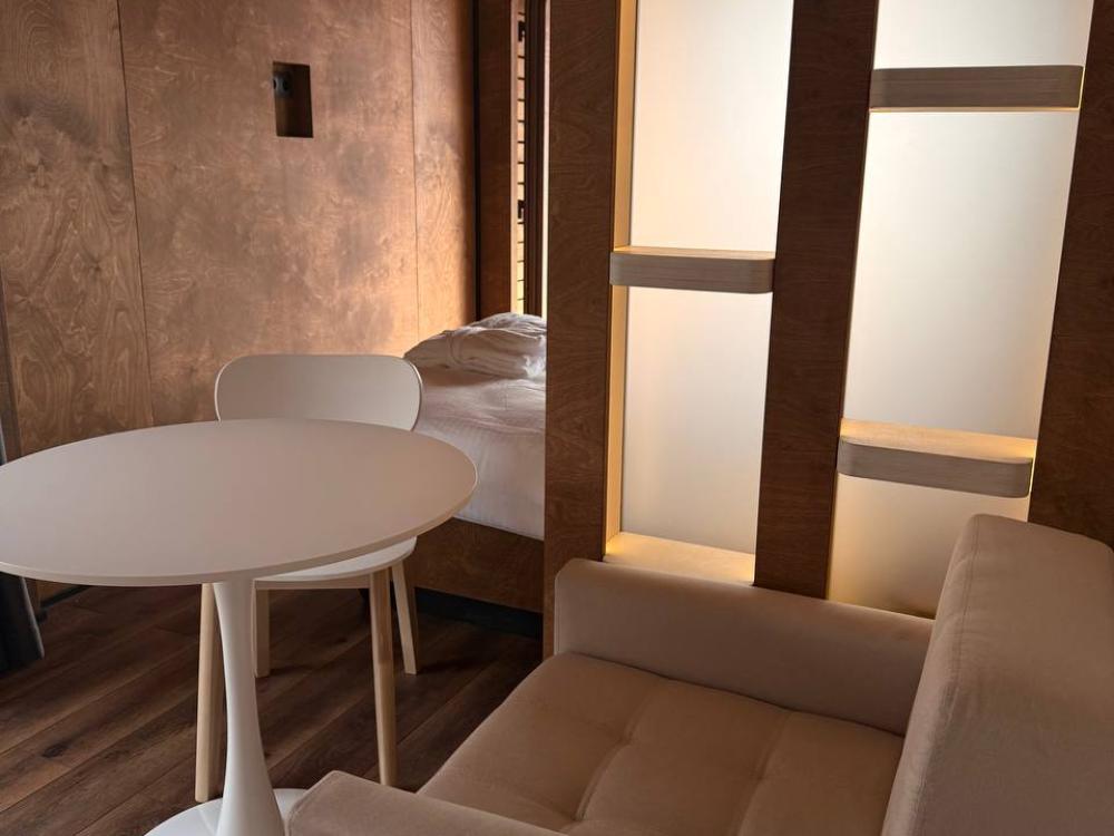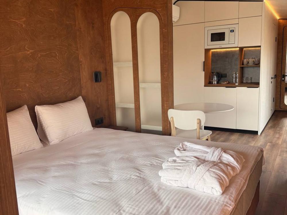 Идеальное решение для тех, кто ценит и уединение, и комфорт. Дом состоит из двух независимых модулей, которые можно арендовать как вместе, так и по отдельности. Варианты размещения: Один модуль: Идеален для семейной пары. В модуле есть двуспальная кровать и дополнительное кресло-кровать. Два модуля: Отличный вариант для двух пар или семьи, где нужны две изолированные комнаты. Вы получаете два модуля с отдельными спальными местами и санузлами. Почему это удобно? Вы арендуете только то, что вам нужно. Путешествуете вдвоём — берите один уютный модуль. Планируете отдых компанией — бронируйте весь дом целиком. Оснащение: Двуспальная кровать Дополнительное кресло-кровать Собственный санузел с душем в каждом модуле Общая велком-зона с чайником и микроволновкой Просторная терраса с видом на ущелье Проживание с домашними животными запрещено! * Обратите внимание: Цена указана за аренду одного модуля.