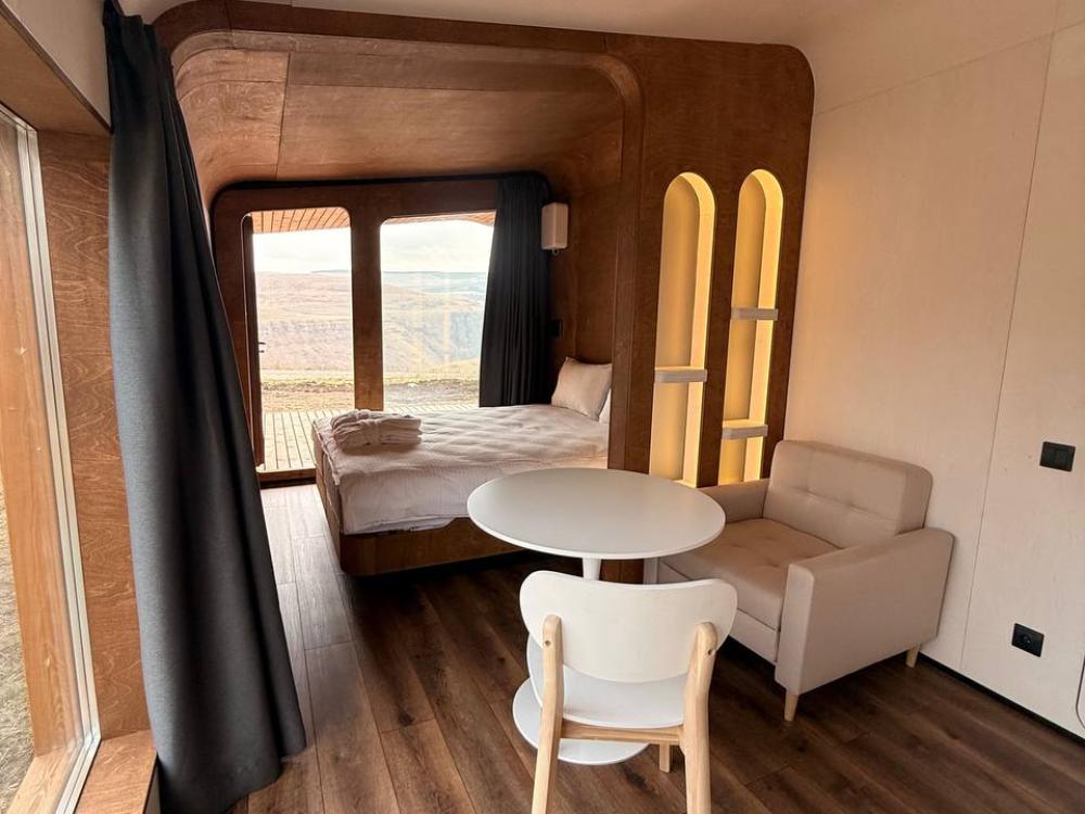 BRO-H — это идеальный вариант для компании друзей или семьи, ценящих комфорт, уединение и потрясающие виды. Оснащение и удобства: Спальные модули (2 шт.): Уютная двуспальная кровать. Дополнительное кресло-кровать для комфортного размещения всех гостей. Собственный санузел с душевой кабиной в каждом модуле. Общие зоны для отдыха: Велком-зона: оснащена чайником, микроволновой печью и всей необходимой посудой (чашки, бокалы). Просторная гостиная: с большим обеденным столом на 6 человек, идеально подходит для совместных трапез и вечерних посиделок. Общая терраса: наслаждайтесь красивейшим видом на ущелье, который открывается с террасы. ❌ Проживание с домашними животными запрещено!