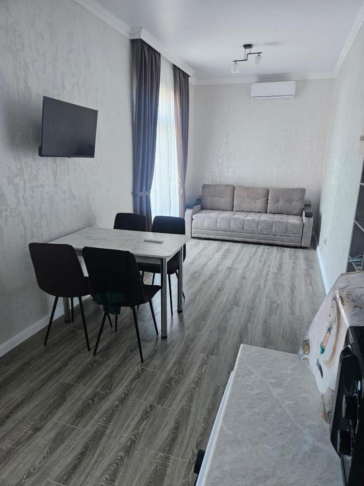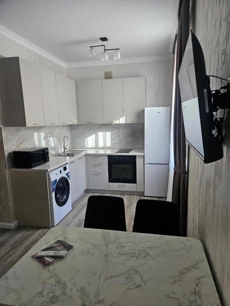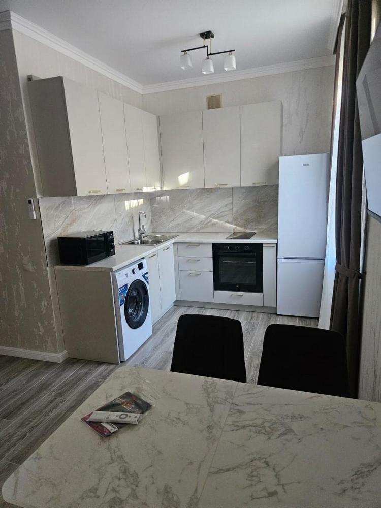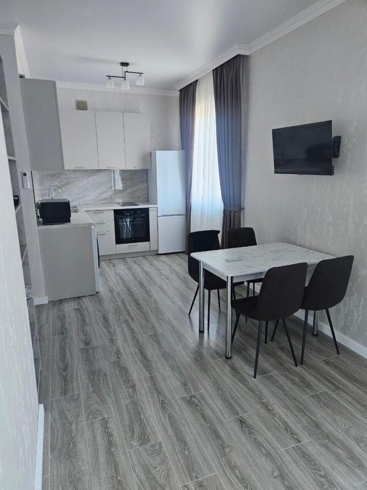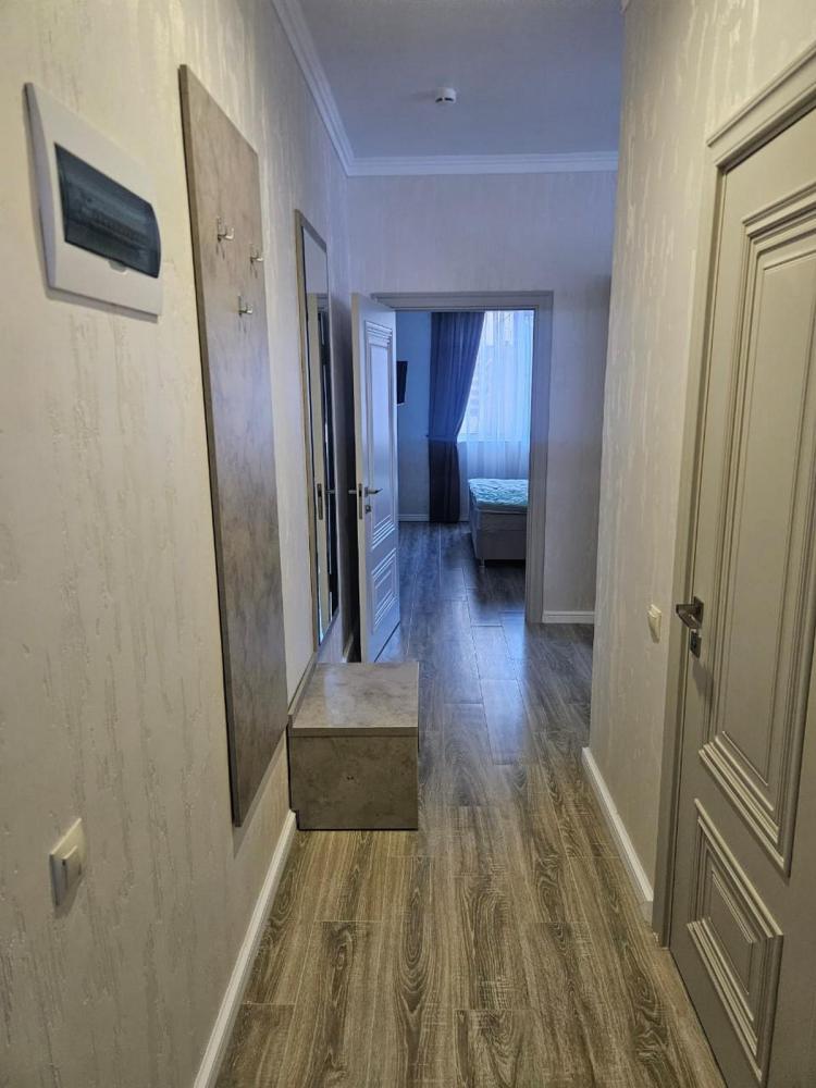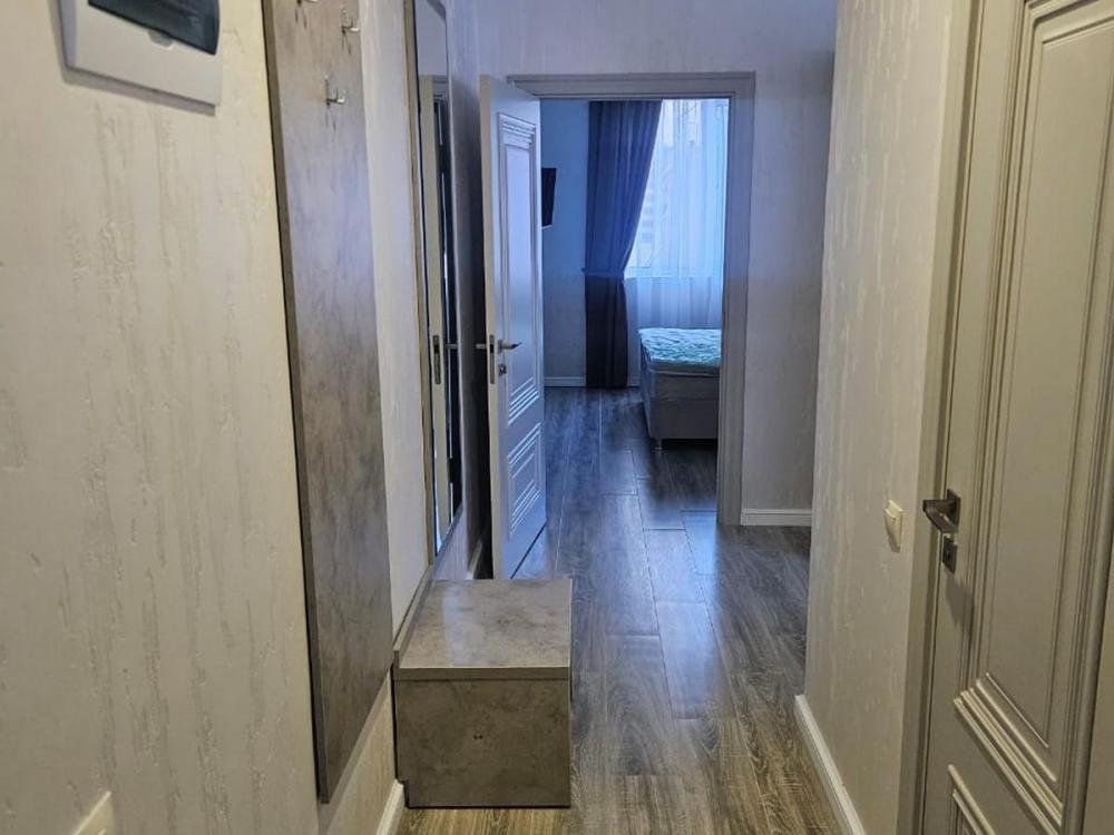 Апартаменты площадью 44 кв.м с красивым видом на горы, город. Подходит для размещения 4 человек. В апартаментах: 1 двуспальная кровать, 1 двуспальный диван, спальня с приятным интерьером, сейф, телевизор, кондиционер, шкаф, вешалка, обеденный и рабочий, плита, духовка, СВЧ, чайник, холодильник, посудомоечная машина, стулья, индивидуальная ванная комната: душ, раковина, туалет. Гостям предоставляется постельное бельё, полотенца, мыло.