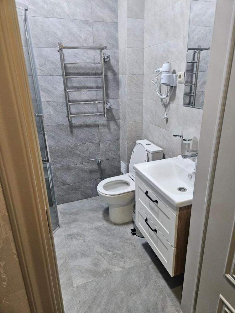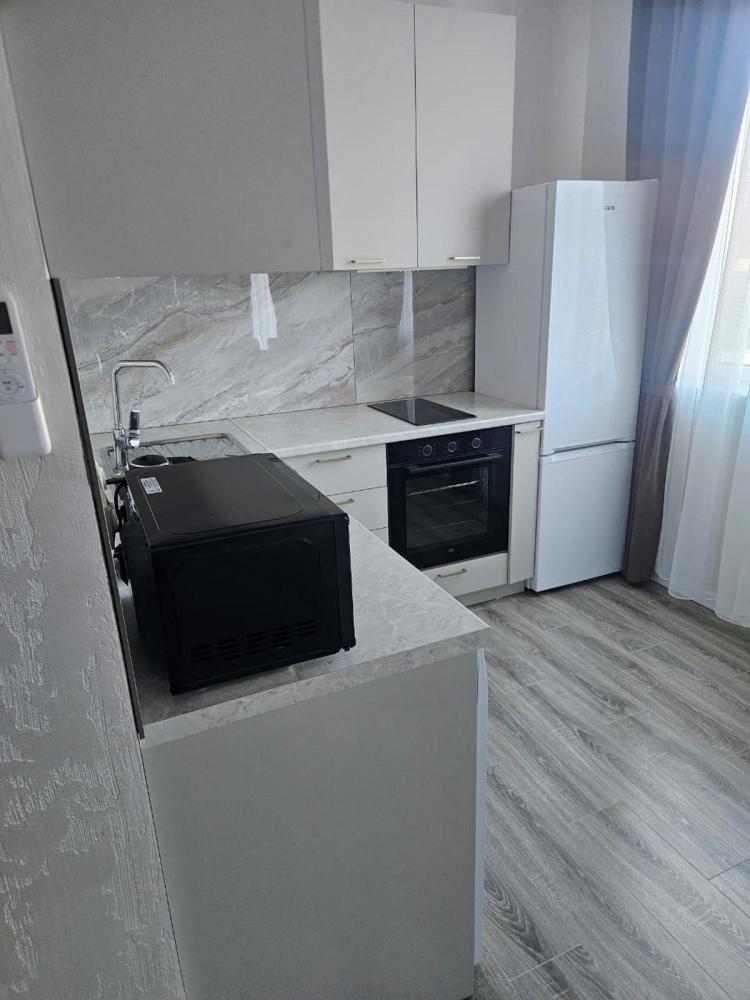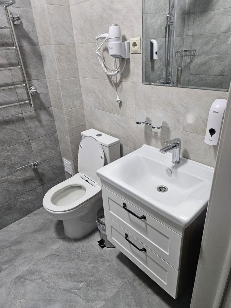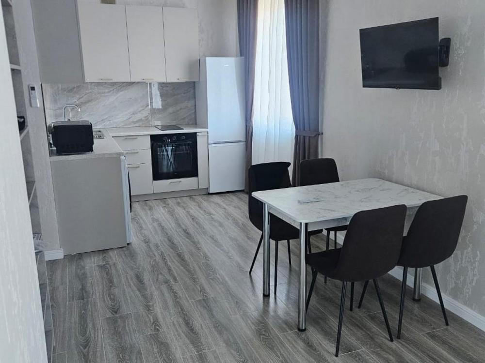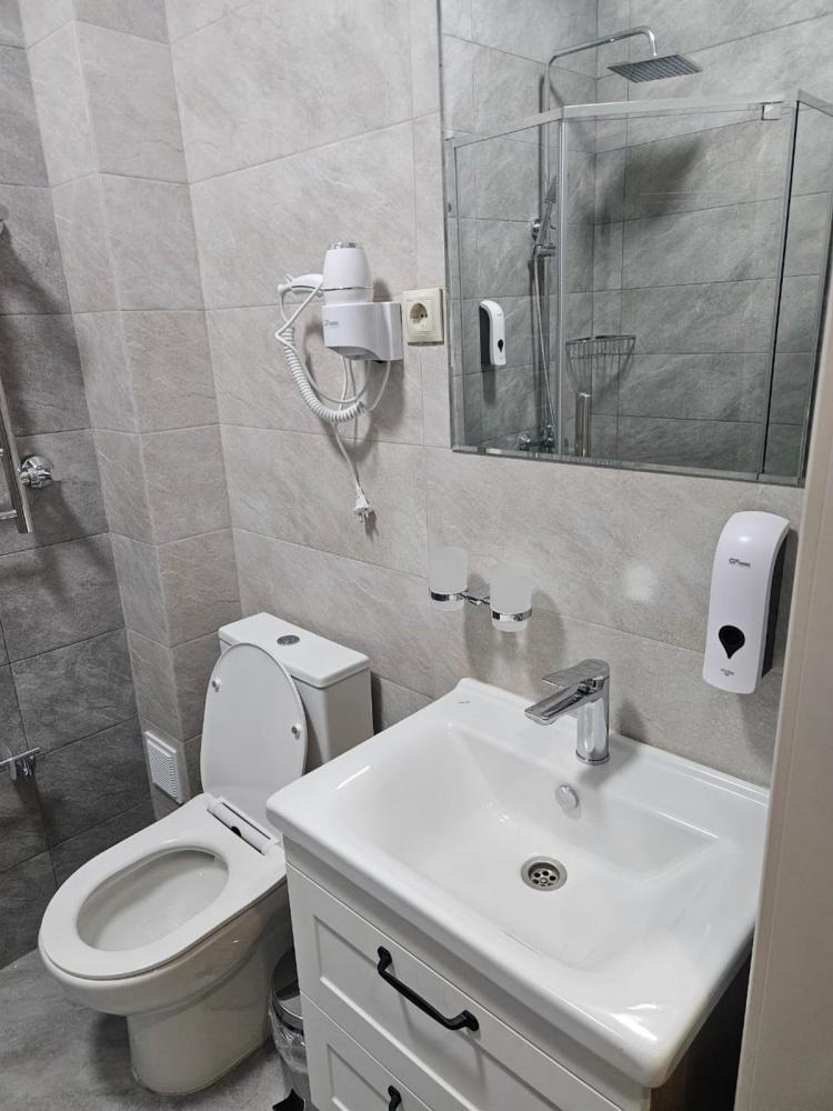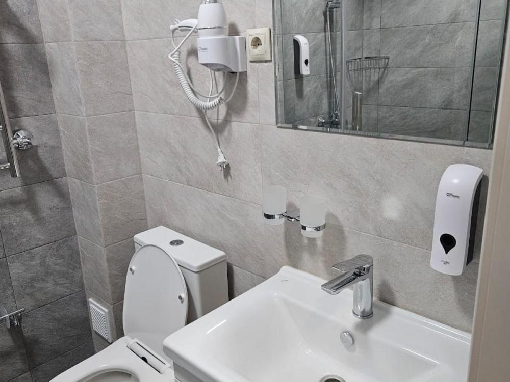 Апартаменты площадью 44 кв.м с красивым видом на горы, город. Подходит для размещения 4 человек. В апартаментах: 1 двуспальная кровать, 1 двуспальный диван, спальня с приятным интерьером, сейф, телевизор, кондиционер, шкаф, вешалка, обеденный и рабочий, плита, духовка, СВЧ, чайник, холодильник, посудомоечная машина, стулья, индивидуальная ванная комната: душ, раковина, туалет. Гостям предоставляется постельное бельё, полотенца, мыло.