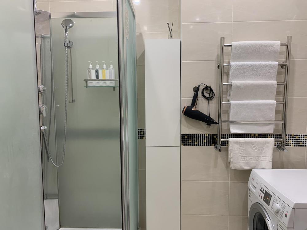Однокомнатный номер класса полу люкс— просторная комната с высокой степенью комфорта, предназначенная для отдыха и релаксации. Спальная зона - Кровать: 2х местная стандартная (ортопедический матрас). Постельное белье высокого качества - Тумбочки рядом с кроватью с лампами для чтения. - Шкаф-купе или гардеробная для хранения вещей. - Полотенца, халаты и тапочки также предоставляются. - ТВ-панель: Большой телевизор с плоским экраном, закрепленный на стене напротив кровати.. Рабочая зона - Письменный стол: Для работы или использования ноутбука. - Wi-Fi: Высокоскоростной доступ в Интернет. - Душевая кабина: С функцией тропического душа или каскадного потока воды. - Фен, набор полотенец и туалетные принадлежности. Дополнительные удобства - Кондиционер: С возможностью регулировки температуры. - Утюг и гладильная доска: По запросу или уже встроены в шкаф. - Чайник/кофеварка: С набором чая и кофе. Интерьер и декор - Освещение: Многоуровневое освещение с возможностью изменения интенсивности света. - Картины, зеркала, декоративные элементы: Добавляют роскошь и элегантность интерьеру. - Цветовая гамма: пастельные тона, создающие ощущение спокойствия и уюта.