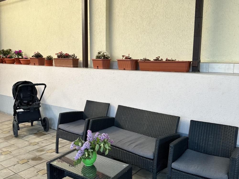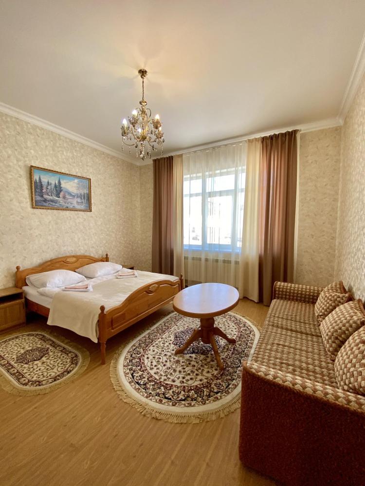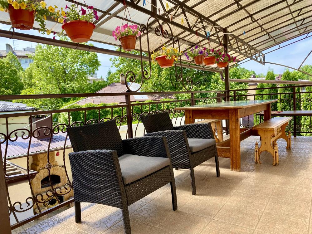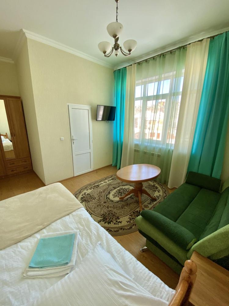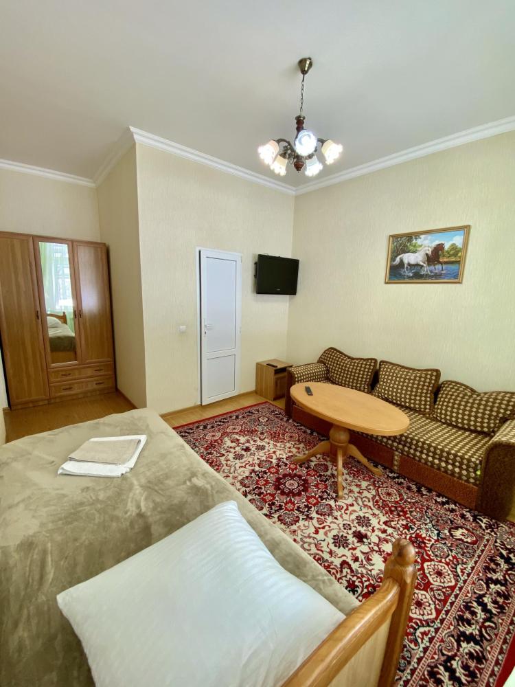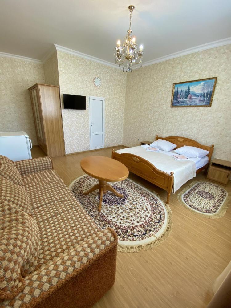 Четырехместный номер номер "Стандарт+" оснащен двухспальной кроватью, раскладным диваном, собственной ванной комнатой и туалетом, телевизором, холодильником, бесплатный Wi-Fi, общей кухней со всеми кухонными принадлежностями, еще есть камин и терраса во дворе и бесплатная парковка.
