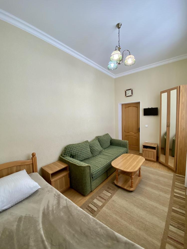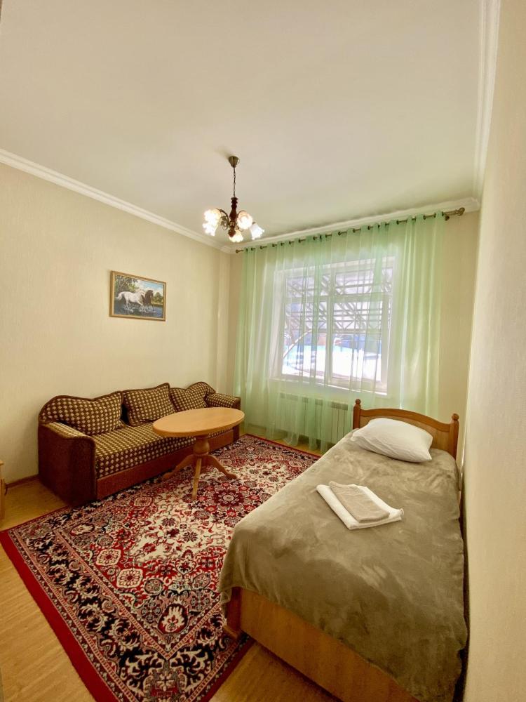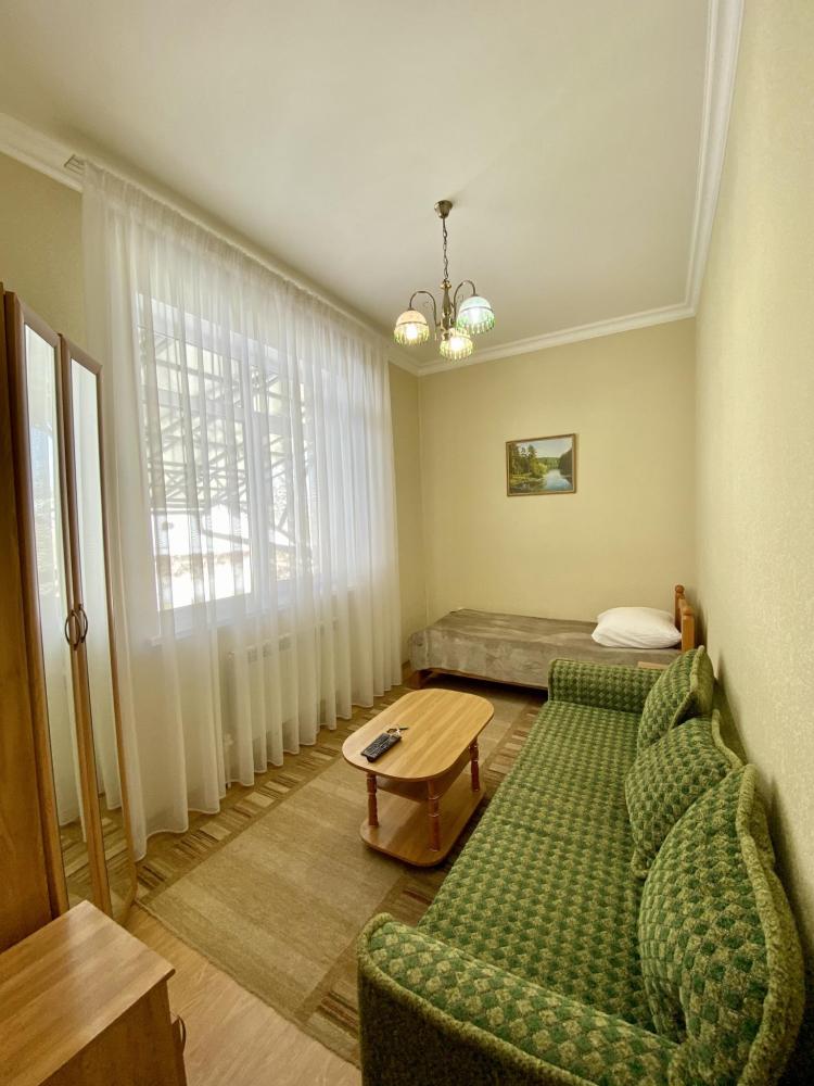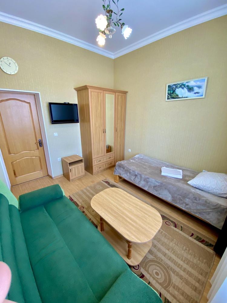 Двухместный номер "Эконом" оснащен односпальной кроватью, раскладным диваном, общей душевой комнатой и туалетом, телевизором, бесплатный Wi-Fi, общей кухней со всеми кухонными принадлежностями, еще есть камин и терраса во дворе и бесплатная парковка. Санузел на два номера.