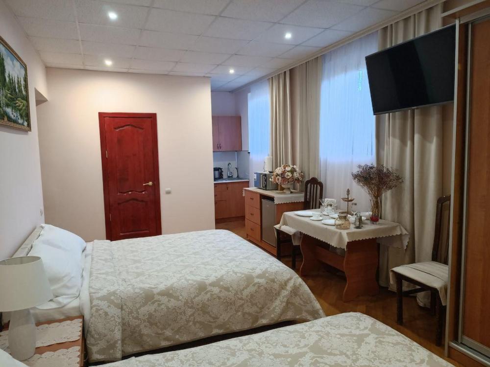 Большие просторные комнаты где чисто и светло. В студии имеется все для комфортного отдыха: большие кровати с ортопедическими матрасами и бельём из 100% хлопка для крепкого сна, кондиционер, микроволновая печь, гладильная доска, утюг, обеденные столы, посуда, Смарт ТВ, высокоскоростной Wi-Fi. В ванных комнатах, фен, беде, душевые кабинки, полотенца, тапочки.