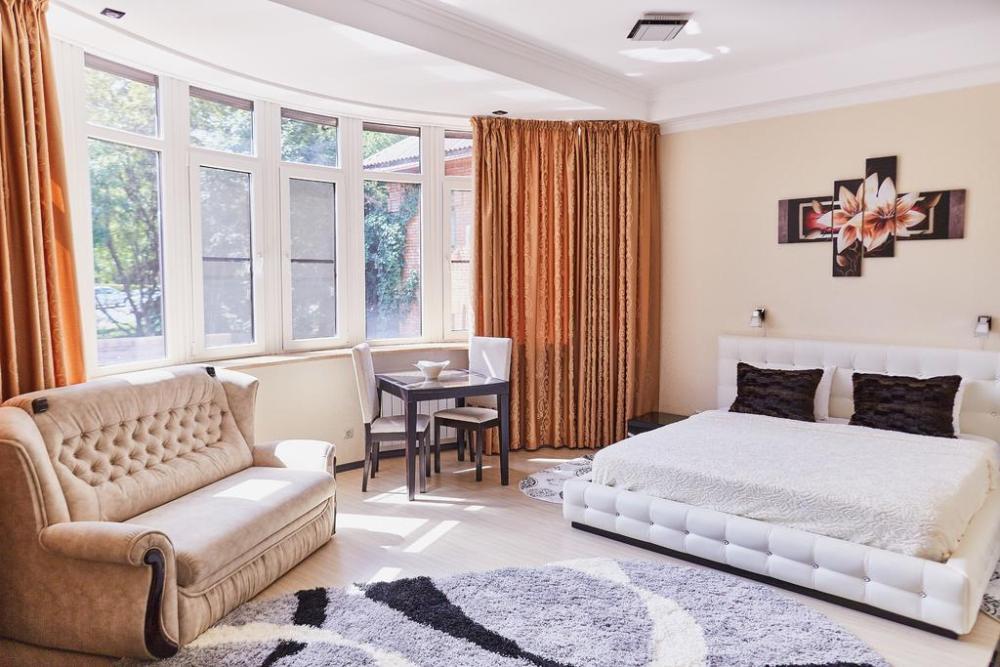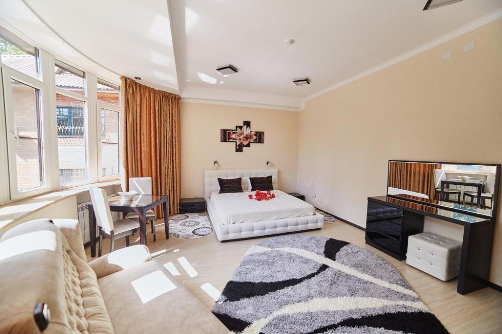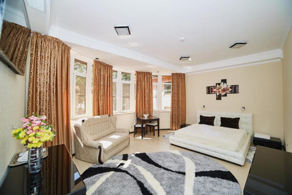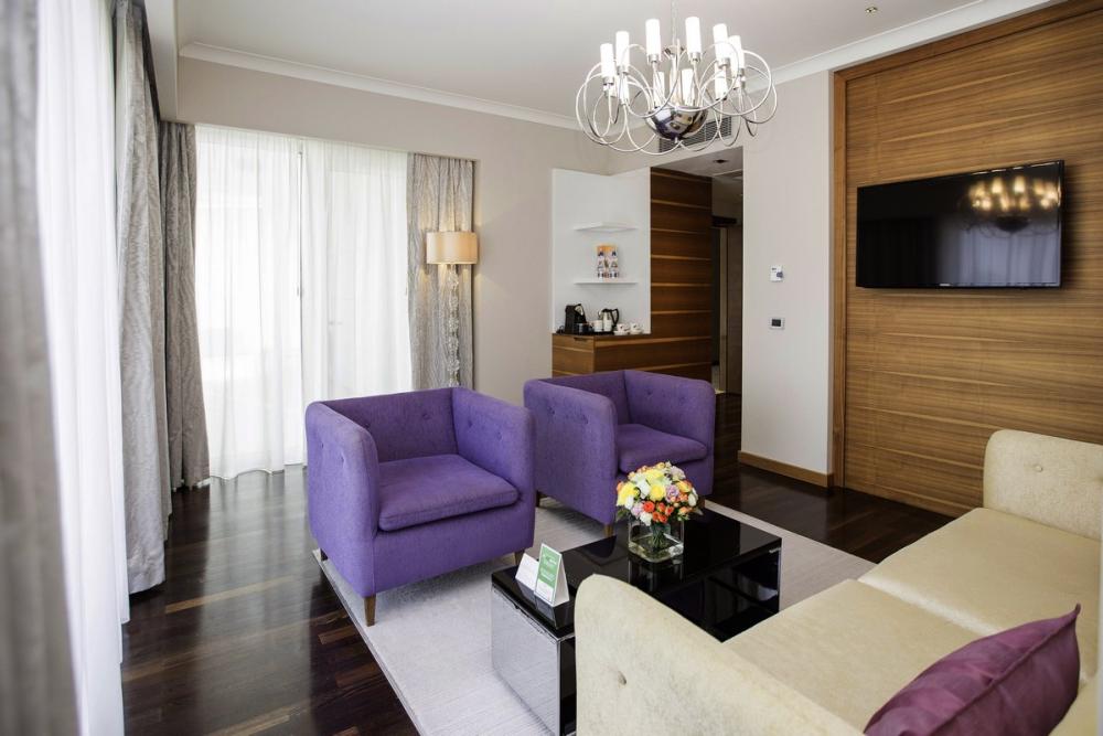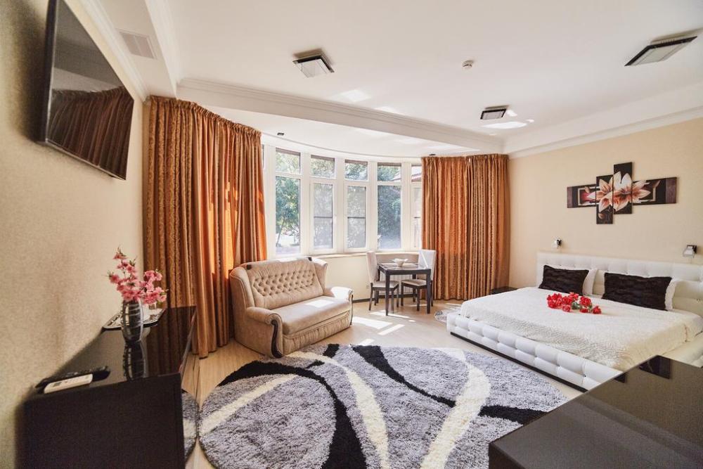 1 двуспальная кровать и диван, мебель, стол, стулья, туалетный столик. Ванная комната. Wi-fi TV 20 каналов Smart TV Внутренний телефон Сейф Кондиционер