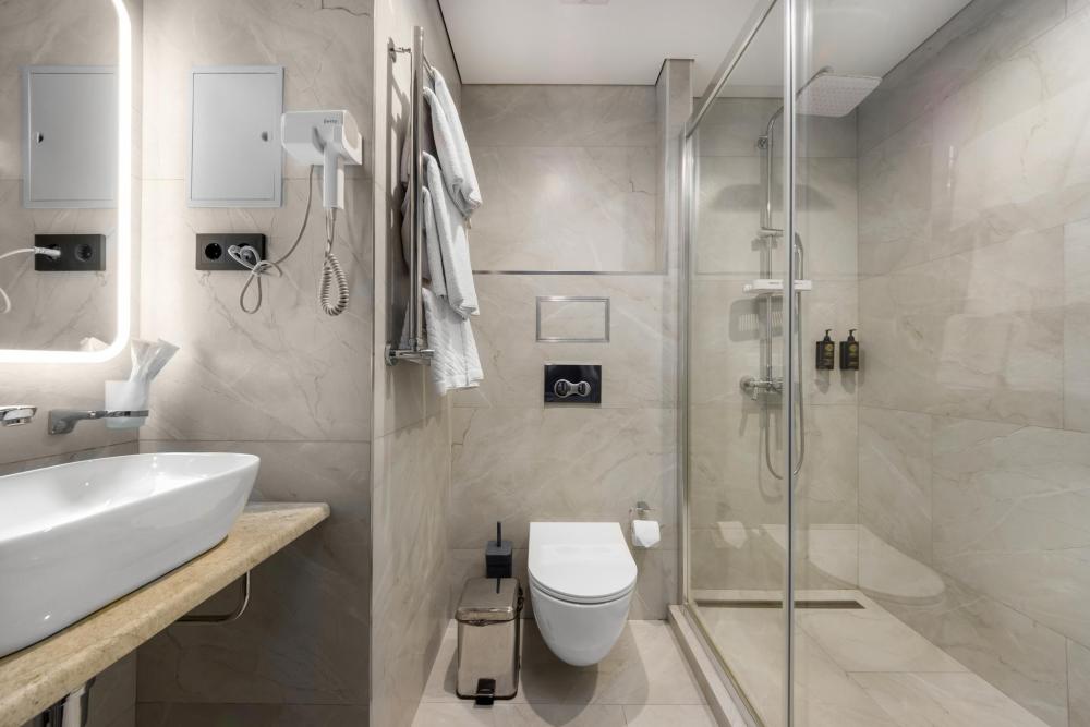 Комфортабельный номер стандарт улучшенный с удобными кроватями с мягким изголовьем и диванами (в большей части номеров), беспроводная зарядка для телефонов, чайная станция и телевизор со Smart TV. Хорошая звукоизоляция и система кондиционирования воздуха.