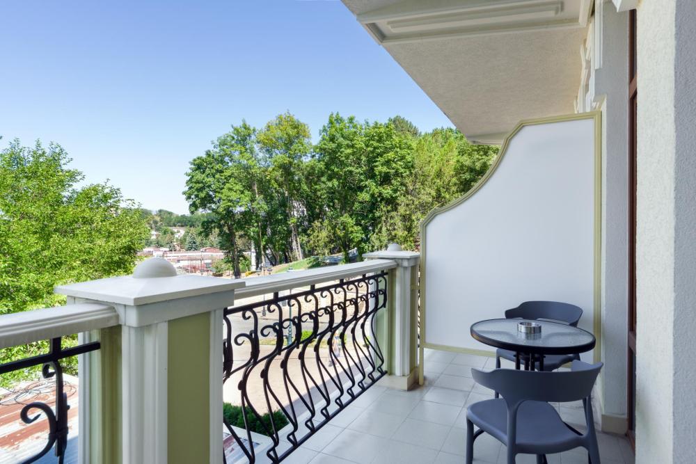 Комфортабельный номер стандарт улучшенный с удобными кроватями с мягким изголовьем и диванами (в большей части номеров), беспроводная зарядка для телефонов, чайная станция и телевизор со Smart TV. Хорошая звукоизоляция и система кондиционирования воздуха. В номере выделен балкон для наслаждениями видами Кисловодска.