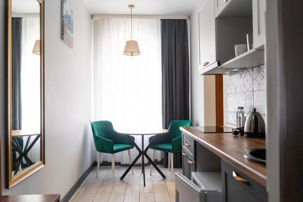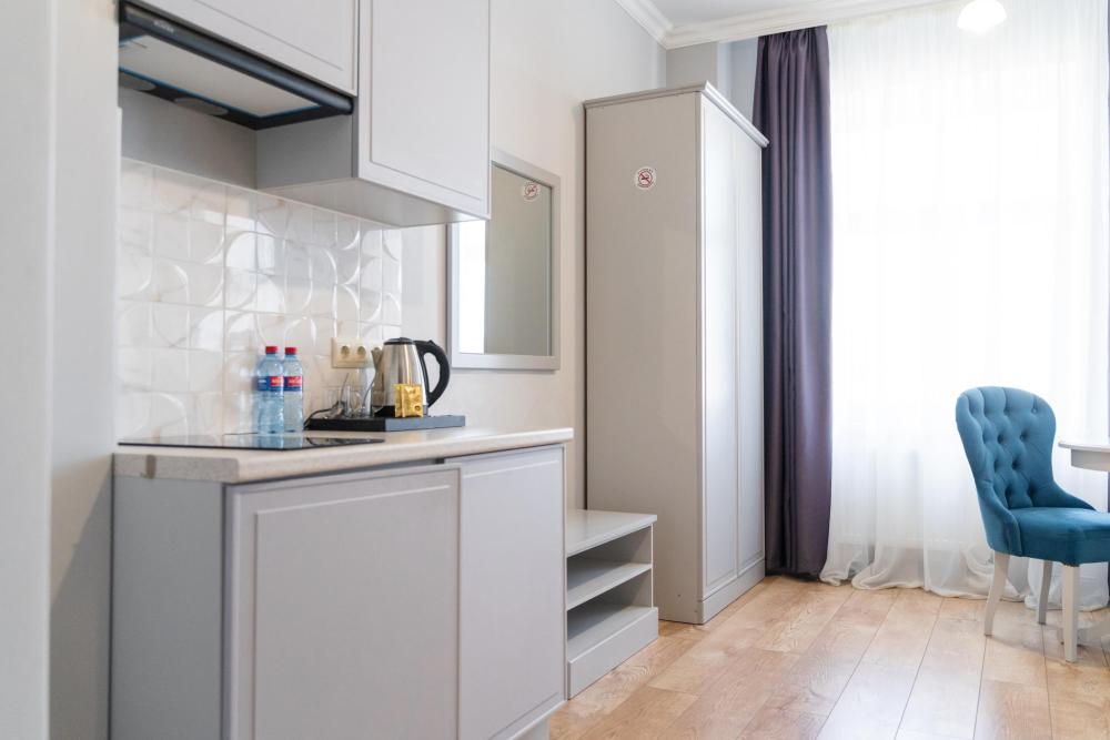 Вас ждёт просторный номер категории Студия для размещения до 3 гостей. В распоряжении гостей — мини-кухня (уточняйте наличие при бронировании), холодильник и чайная станция, чтобы вы чувствовали себя как дома. Мы стремимся сделать ваше пребывание максимально комфортным и будем рады вашим отзывам: расскажите, что вам понравилось на презентации и что мы можем улучшить. Ваше мнение помогает нам становиться лучше!