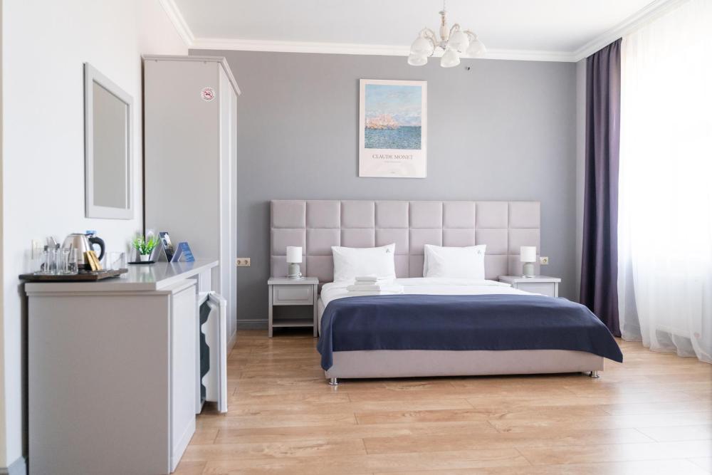 Номер стандарт- для размещения 2 гостей. В номере есть все необходимое, чайная станция, холодильник, сейф для хранения ценных вещей, 2 спальная кровать и диван. Ванная комната оснащена так же всеми необходимыми для гостя, это шампунь, гель для душа, тапочки.