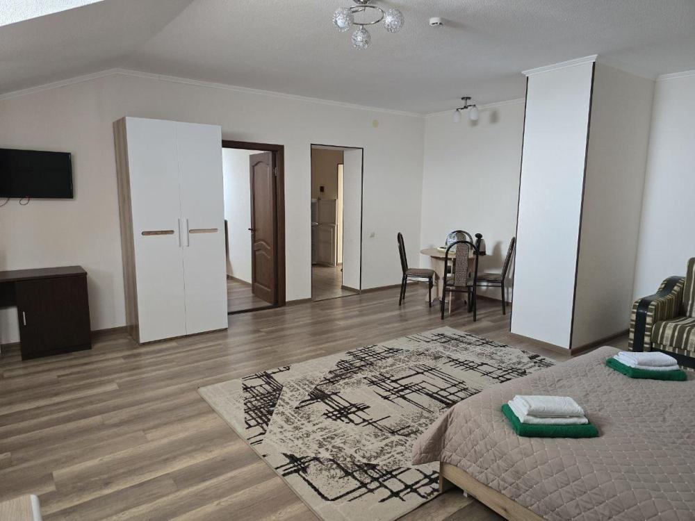 Просторный номер из двух комнат c большой ванной комнатой, располагающий к отдыху интерьер , 2 двуспальные кровати 2 раскладных дивана-кровати ( одноместное размещение). Для вашего комфорта предусмотрена дополнительная мебель : два кресла -кровати, небольшой столик и стулья для вашего уюта, сюда будет приятно возвращаться после прогулок. Wi-fi в холле отеля. Максимальное размещение 6 гостей.