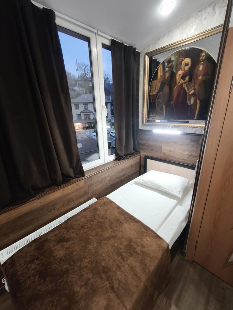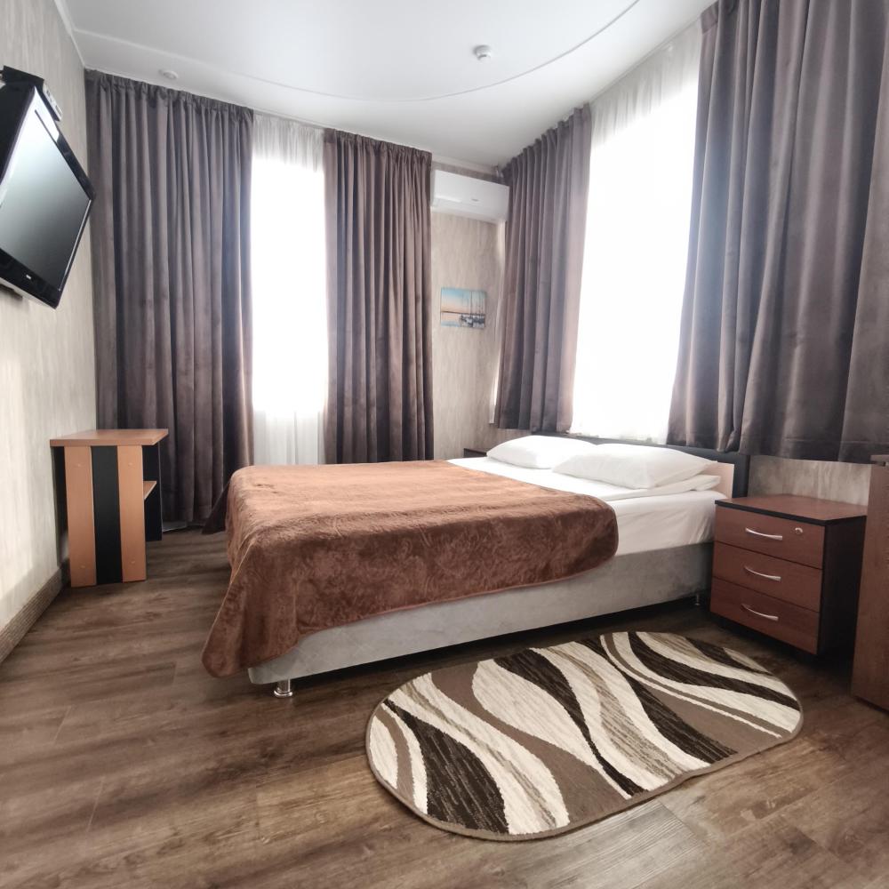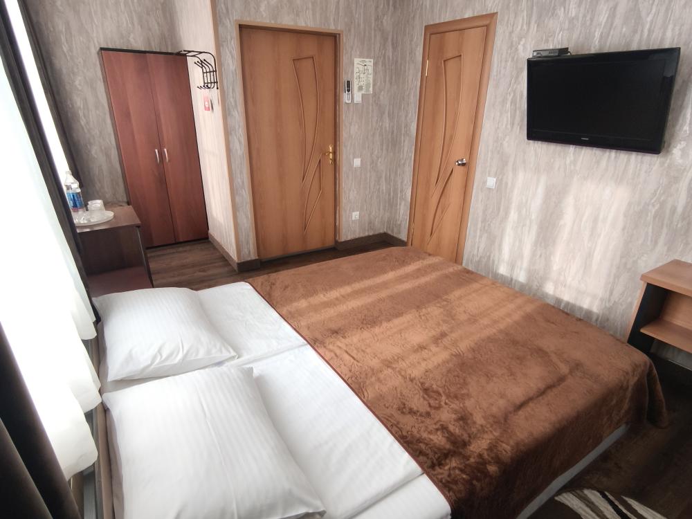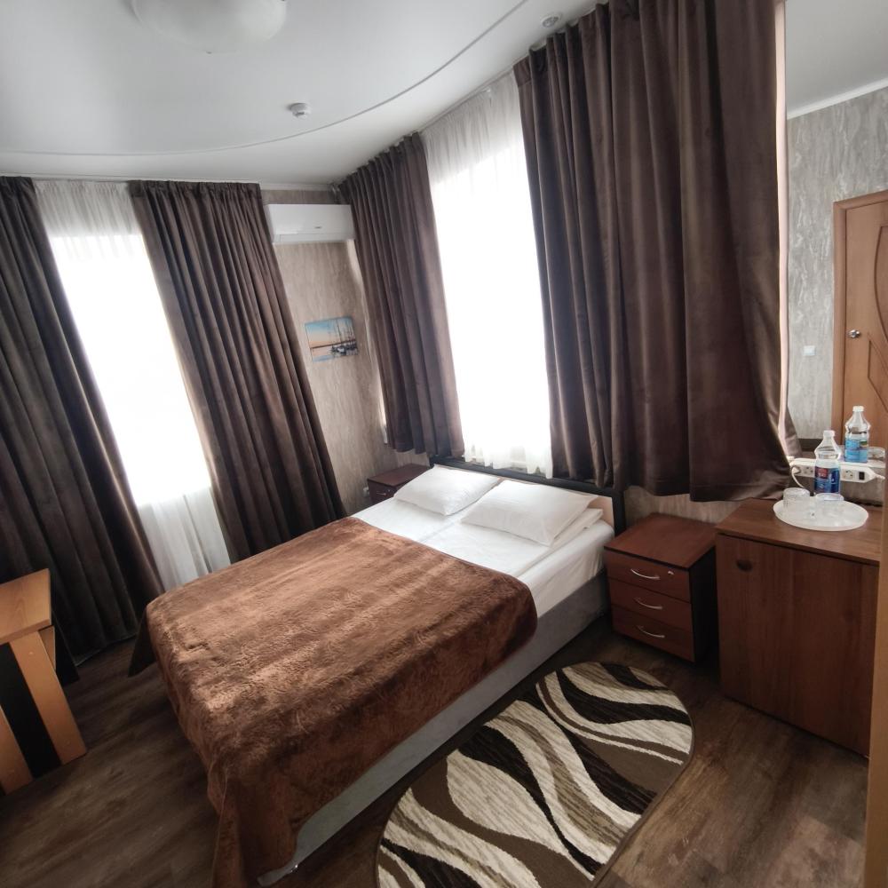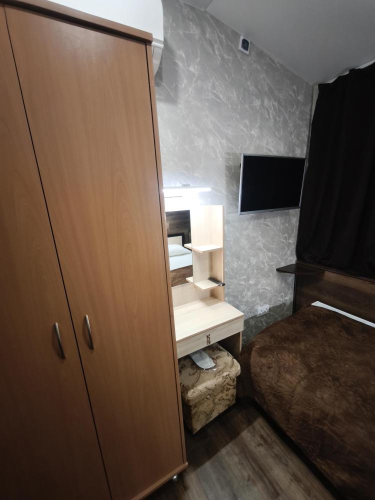 Одноместный номер —предназначенный для проживания одного гостя. Включает кровать, шкаф, трюмо, стул и минимально необходимую мебель. Санузел индивидуальный, есть все необходимые гигиенические комплекты и туалетные принадлежности.