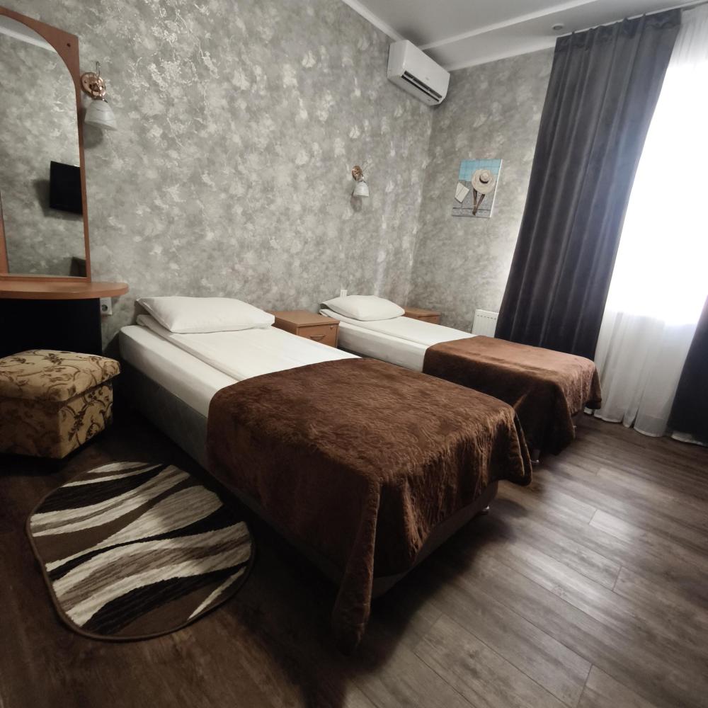 Номер "Комфорт" с двумя односпальными кроватями или одной двуспальной кроватью с возможностью дополнительного места.