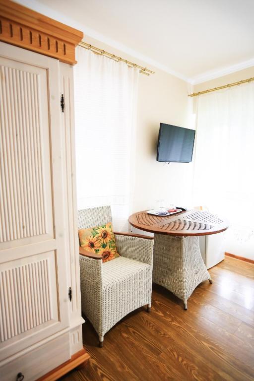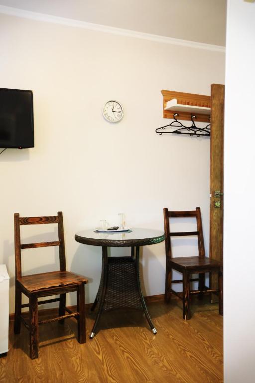 Небольшой, но очень уютный однокомнатный номер с собственной ванной комнатой. В номере есть все необходимое для приятного отдыха: удобная двуспальная кровать, небольшой столик со стульями, телезор, холодильник, электрический чайник. А также набор чайной посуды, вешалки для одежды, комплект полотенец