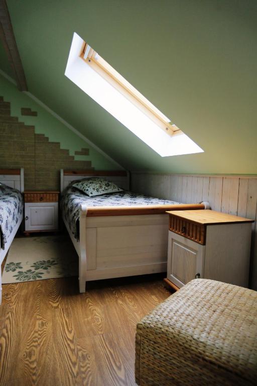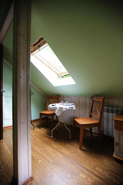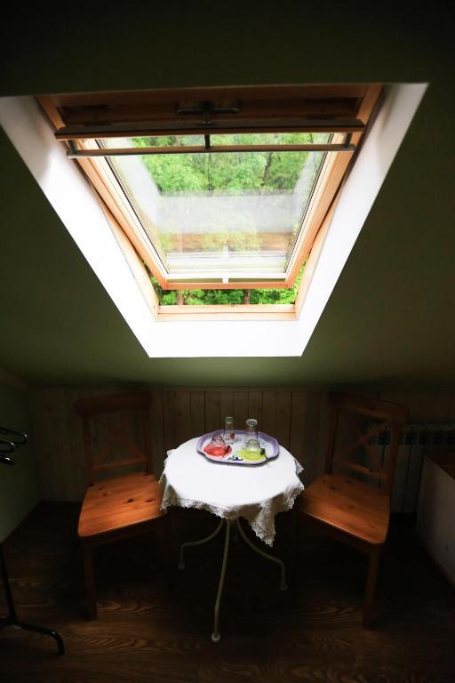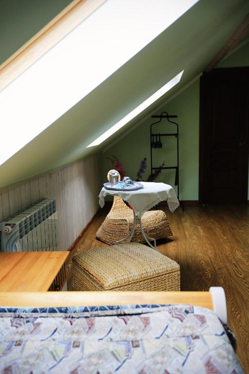 Уютный мансардный двухместный номер с собственной ванной комнатой. В номере есть все необходимое для приятного отдыха: 2 односпальные кровати, которые при желании можно сдвинуть, небольшой столик и стулья, телевизор, холодильник, электрический чайник. А также набор чайной посуды, вешалки для одежды, комплект полотенец