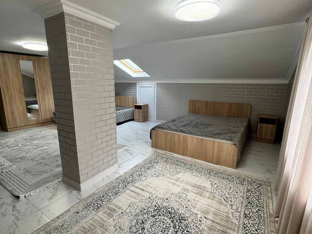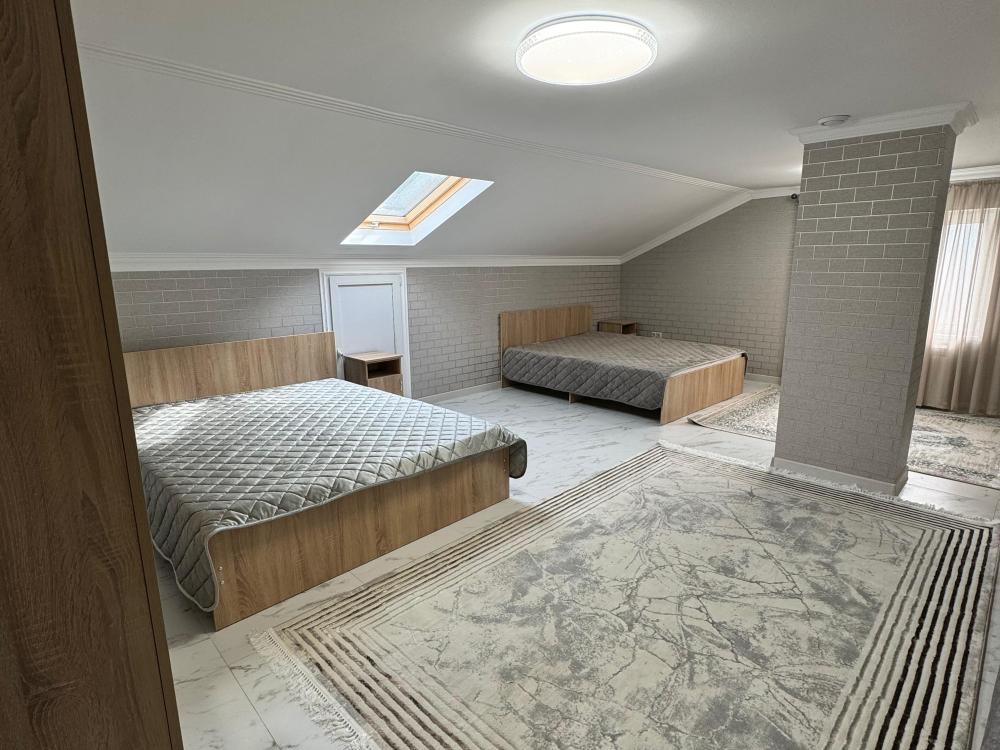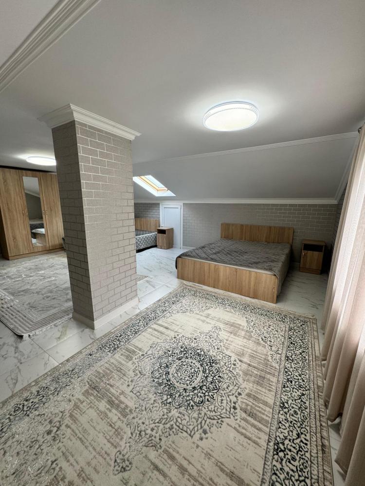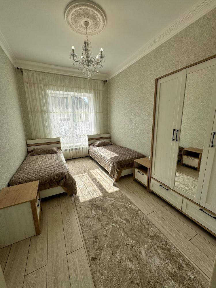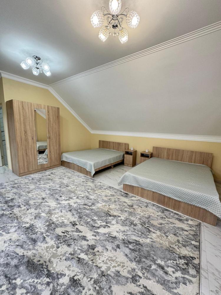 в доме восемь отдельных комнат, каждая из которых закрывается на ключ. В доме три этажа, и на каждом из них продумано всё до мелочей. На первом этаже расположены три спальни: две с раздельными кроватями, одна с двуспальной кроватью и личным санузлом. Здесь же находятся ванная комната и отдельный туалет. Второй этаж порадует просторной кухней со всем необходимым для приготовления любимых блюд. Ванной комнатой с туалетом и двумя спальнями. Одна спальня с двумя односпальными кроватями, вторая с уютной двуспальной кроватью. В общей комнате телевизор и два удобных дивана для вечернего отдыха. Третий этаж разделён на две зоны: в одной зоне кухня, душевая, спальня с двумя двуспальными кроватями и диваном. Во второй зоне, комната с собственной ванной, двумя двуспальными кроватями, диваном и выходом на террасу с потрясающим видом на горы. На каждом этаже установлены стиральные машины.