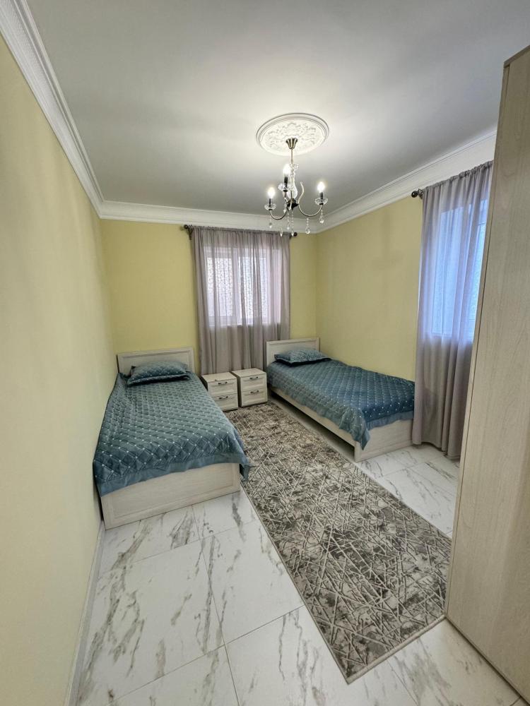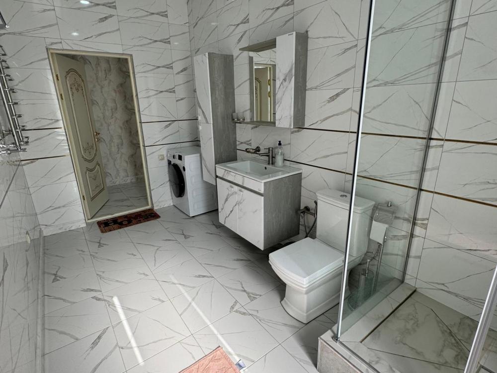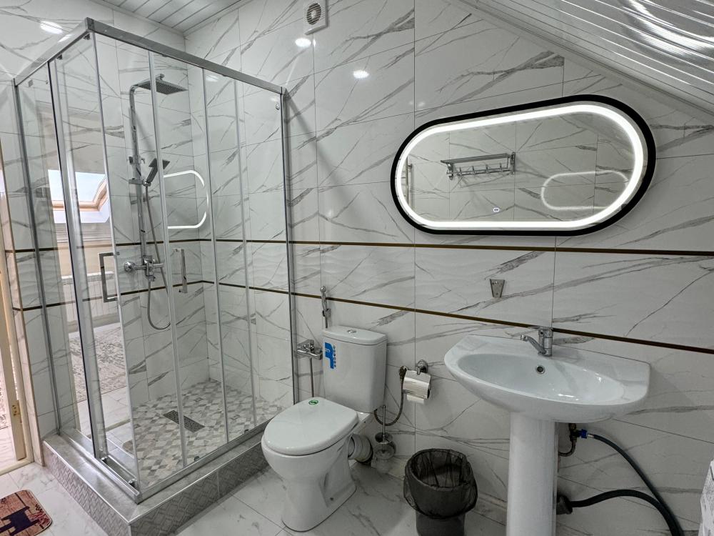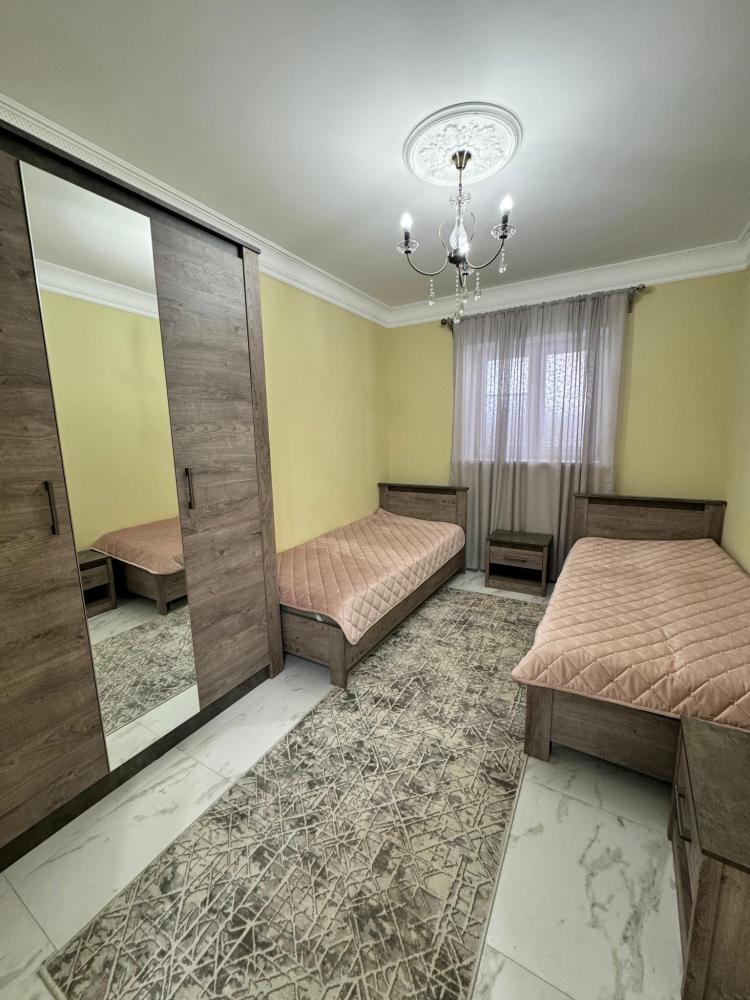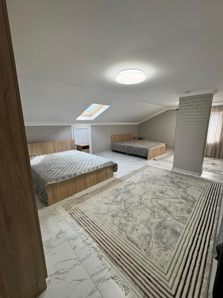 в доме восемь отдельных комнат, каждая из которых закрывается на ключ. В доме три этажа, и на каждом из них продумано всё до мелочей. На первом этаже расположены три спальни: две с раздельными кроватями, одна с двуспальной кроватью и личным санузлом. Здесь же находятся ванная комната и отдельный туалет. Второй этаж порадует просторной кухней со всем необходимым для приготовления любимых блюд. Ванной комнатой с туалетом и двумя спальнями. Одна спальня с двумя односпальными кроватями, вторая с уютной двуспальной кроватью. В общей комнате телевизор и два удобных дивана для вечернего отдыха. Третий этаж разделён на две зоны: в одной зоне кухня, душевая, спальня с двумя двуспальными кроватями и диваном. Во второй зоне, комната с собственной ванной, двумя двуспальными кроватями, диваном и выходом на террасу с потрясающим видом на горы. На каждом этаже установлены стиральные машины.