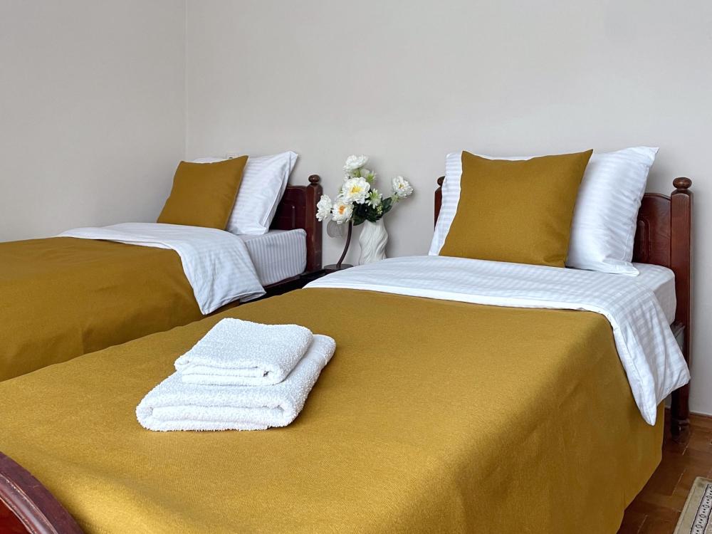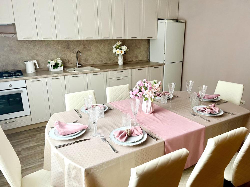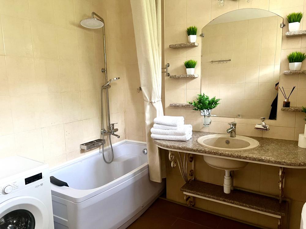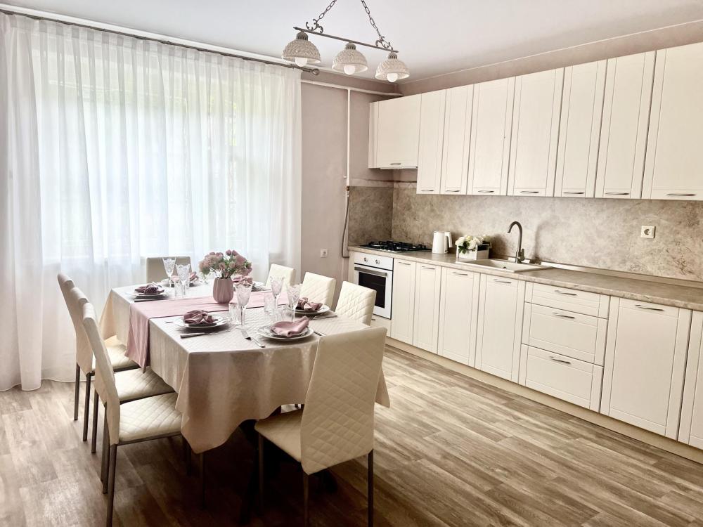 Двухэтажный дом после косметического ремонта. Шесть комнат, пять спален. Для 4 гостей предоставляется две спальни, для 5-6 гостей три спальни, для 7-8 гостей четыре спальни, для 9-10 гостей пять спален. Один санузел, три телевизора со Smart. Двор, обеденная зона на улице.