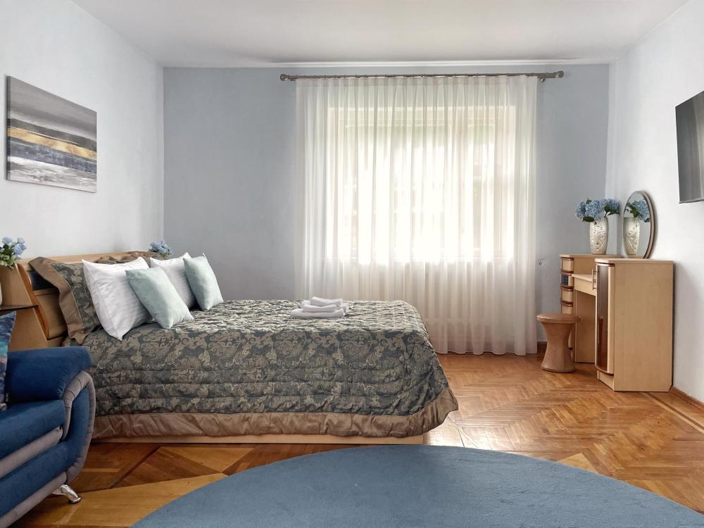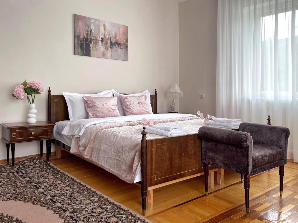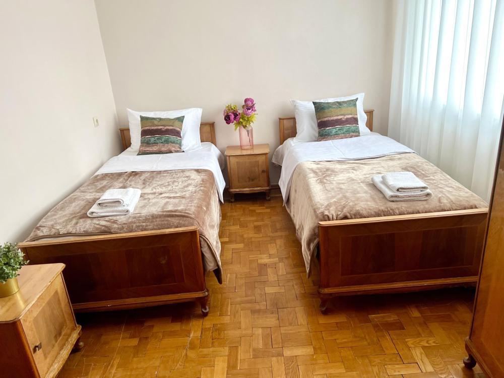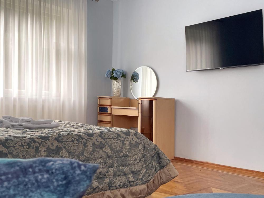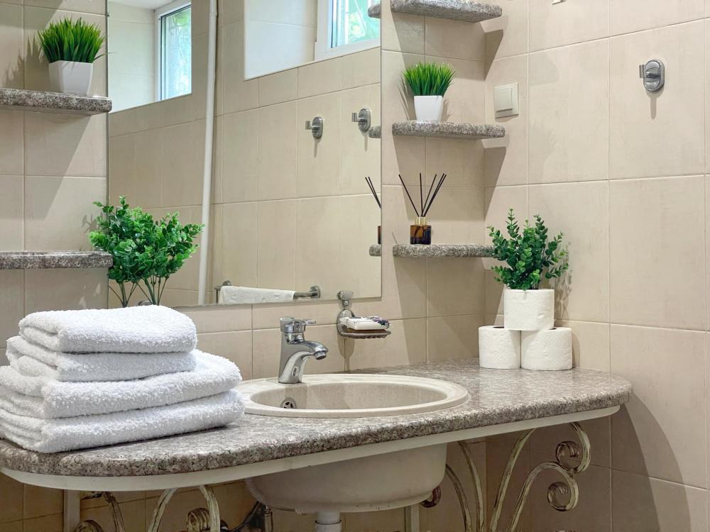 Двухэтажный дом после косметического ремонта. Шесть комнат, пять спален. Для 4 гостей предоставляется две спальни, для 5-6 гостей три спальни, для 7-8 гостей четыре спальни, для 9-10 гостей пять спален. Один санузел, три телевизора со Smart. Двор, обеденная зона на улице.