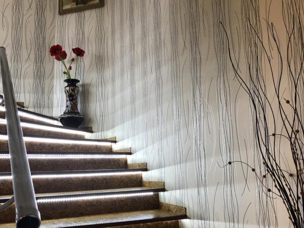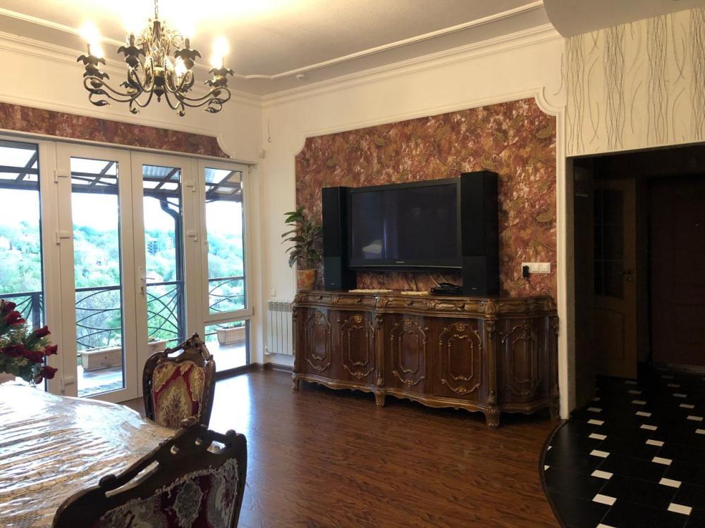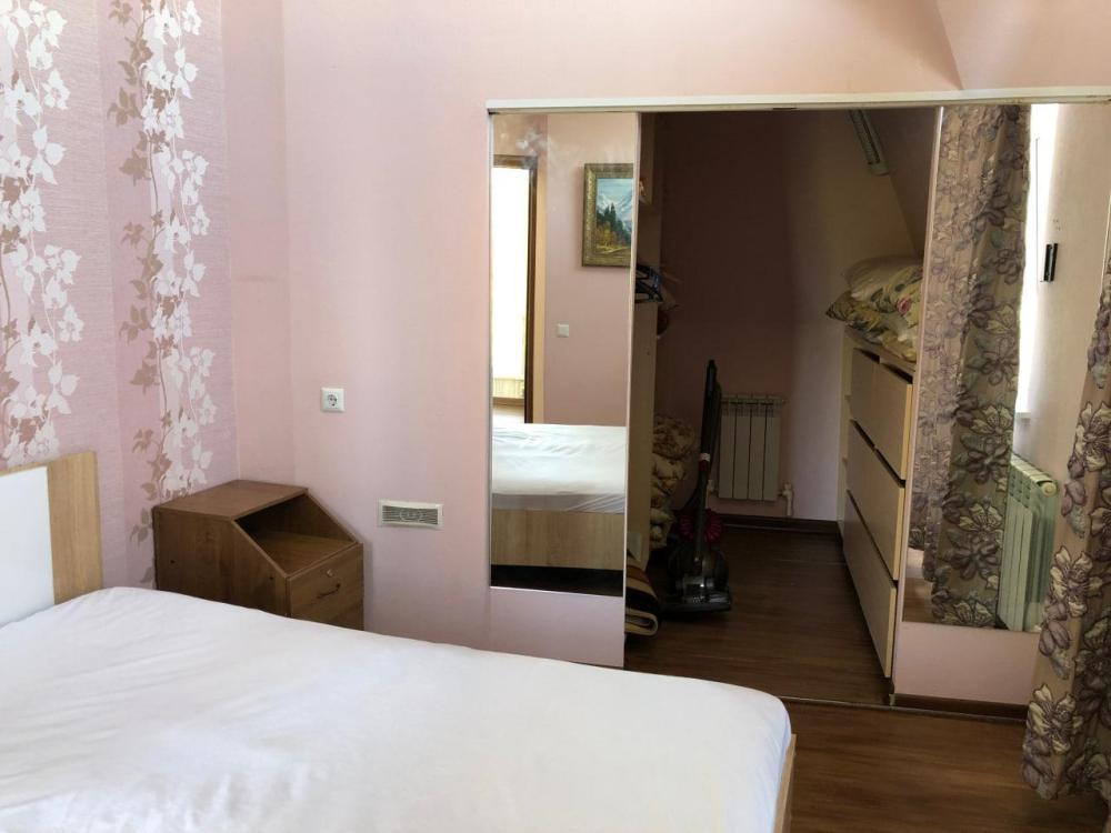 На втором этаже расположена гостиная, совмещенная с кухней с выходом на балкон, а также прихожая и санузел. На третьем этаже расположено 3 спальни и санузел с джакузи. Максимум 6 гостей.