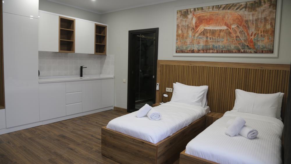 Роскошный люкс располагает просторной гостиной, отдельной спальней и ванной комнатой с ванной и бесплатными туалетными принадлежностями. Кухня удобна для приготовления и хранения еды. К услугам гостей современные удобства, такие как кондиционер, телевизор с плоским экраном и потоковой передачей видео, мини-бар и принадлежности для приготовления чая и кофе.