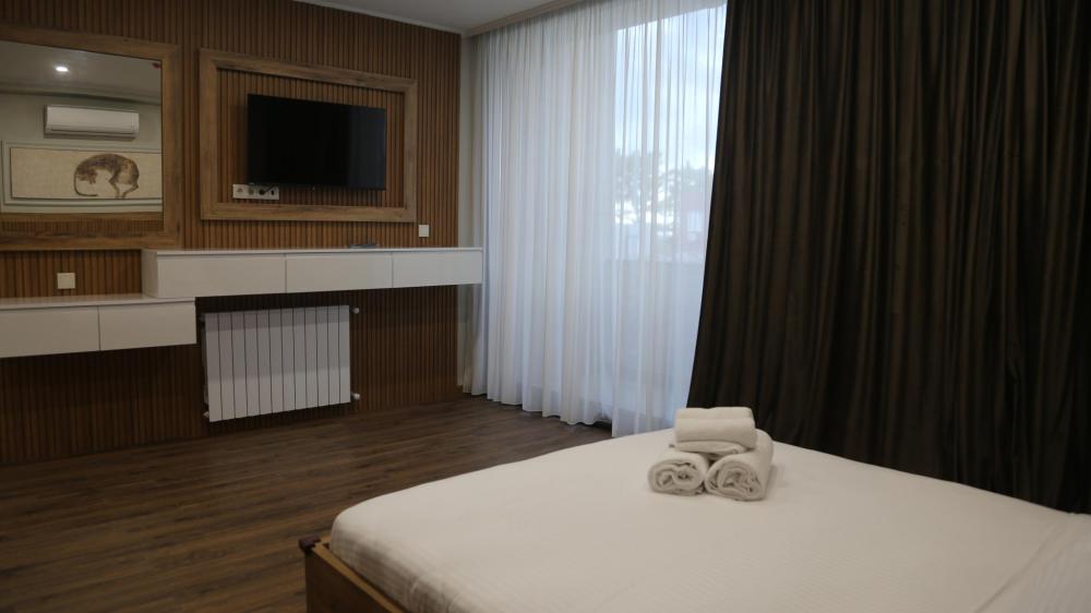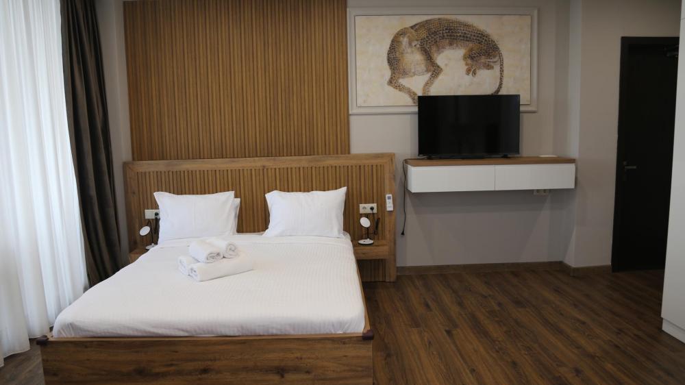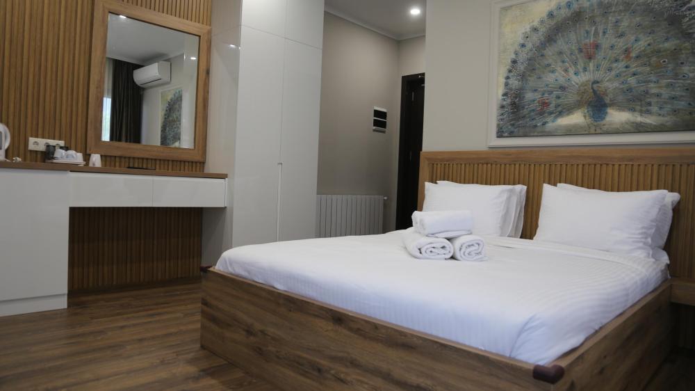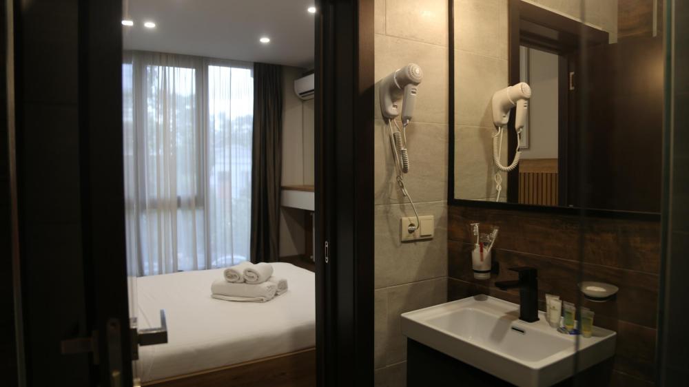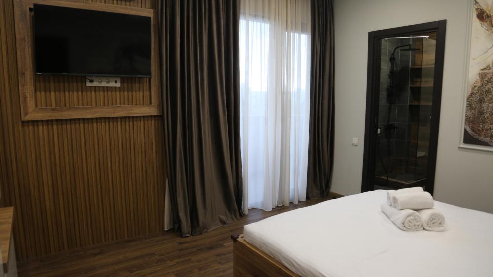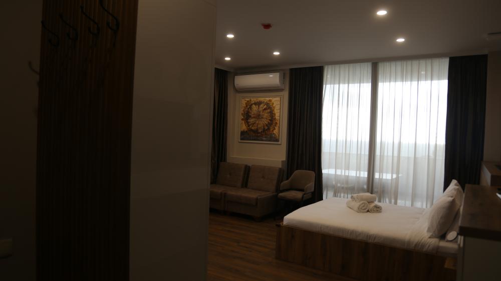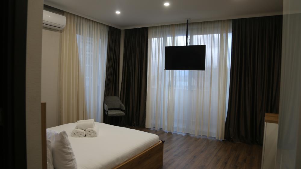 Номер с кондиционером, письменным столом, электрическим чайником, сейфом, телевизором с плоским экраном и собственной ванной комнатой с душем.