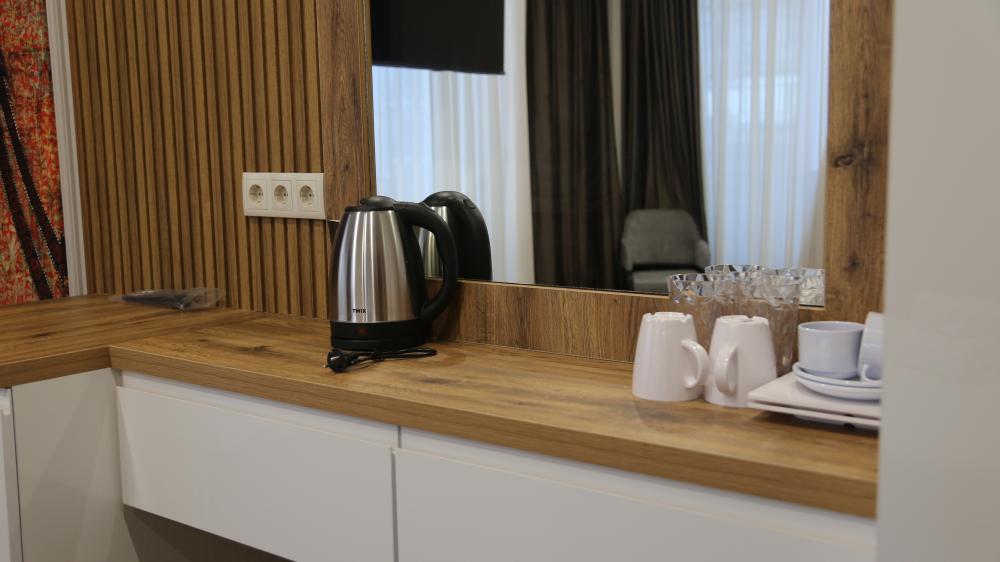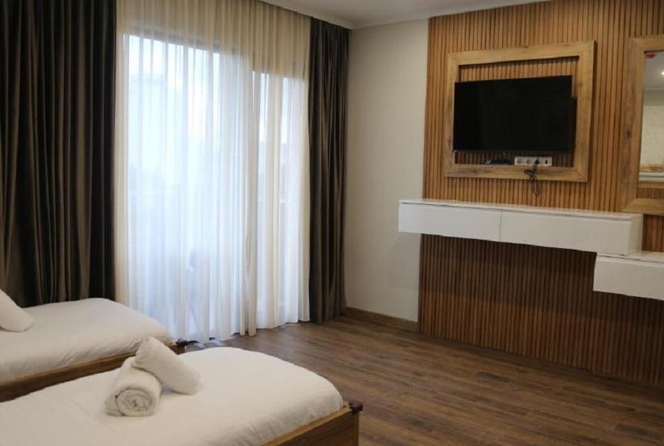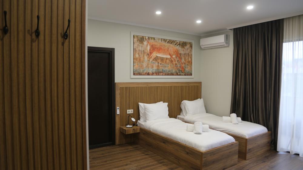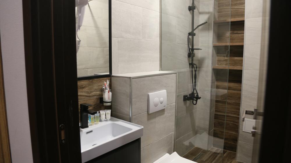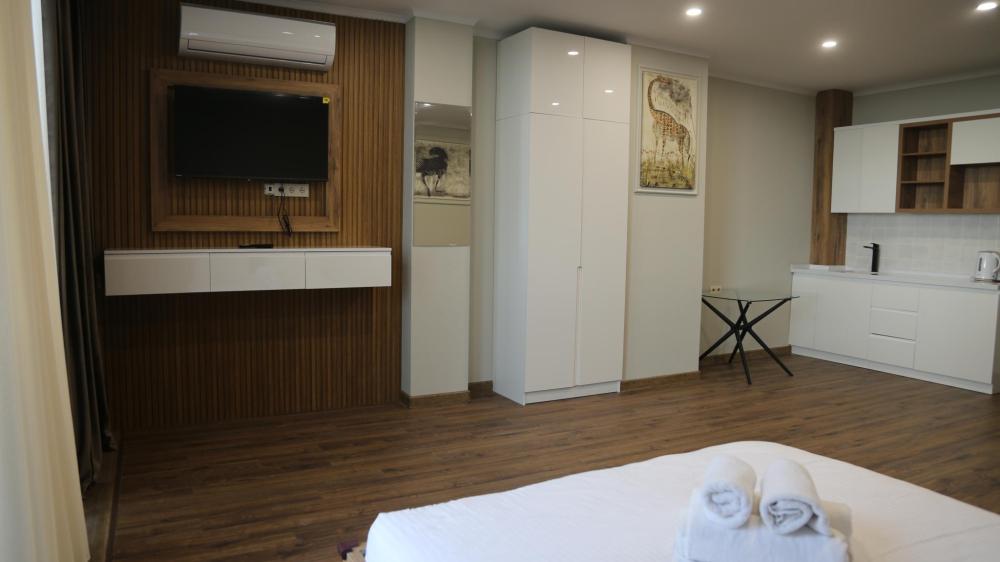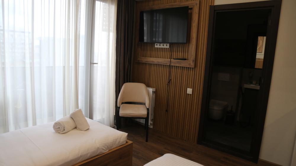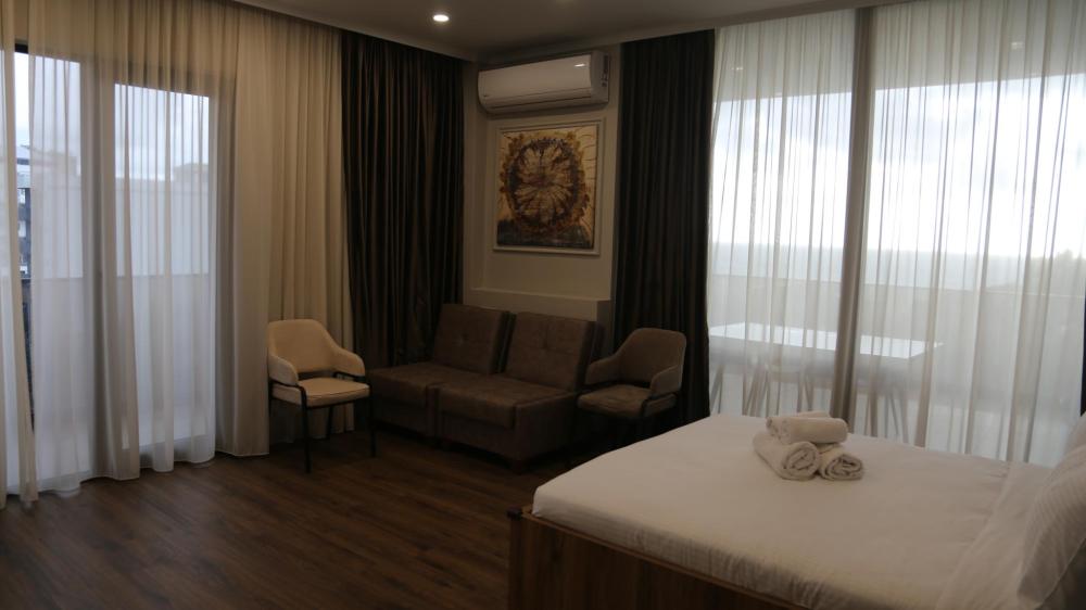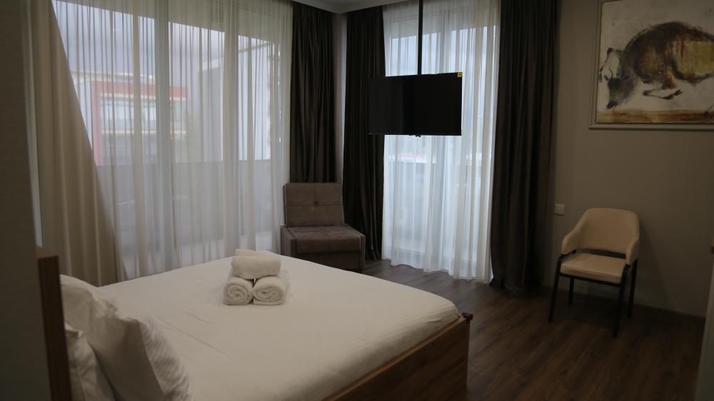 Номер с кондиционером, письменным столом, электрическим чайником, сейфом, телевизором с плоским экраном и собственной ванной комнатой с душем.