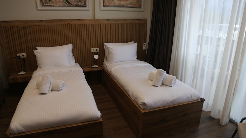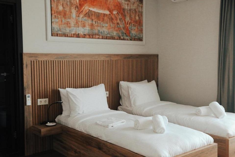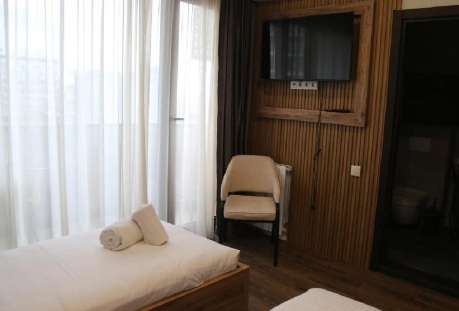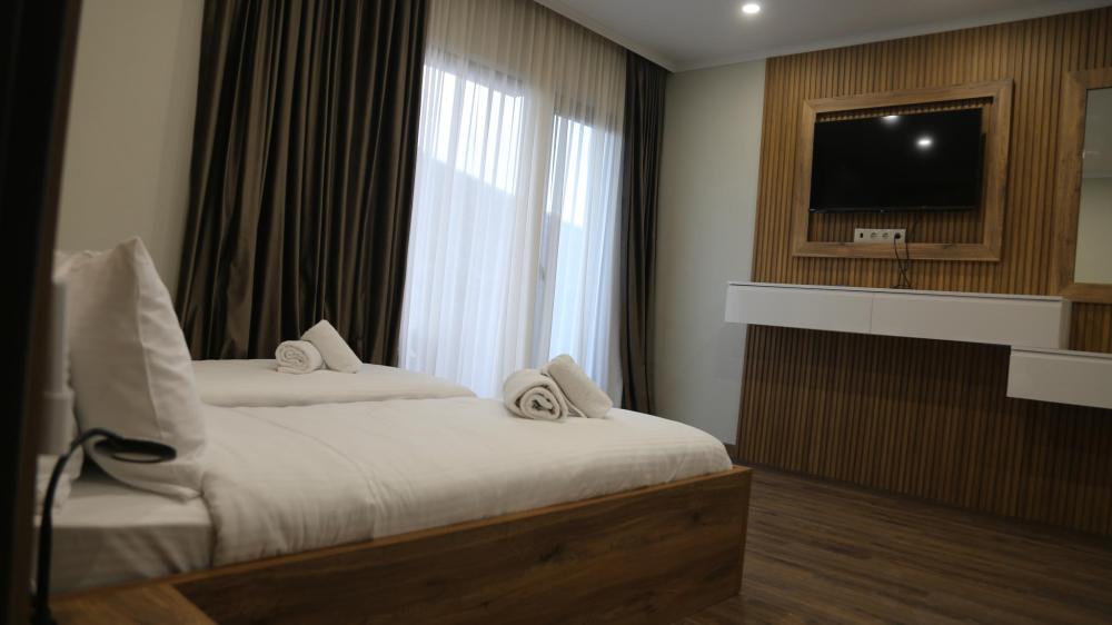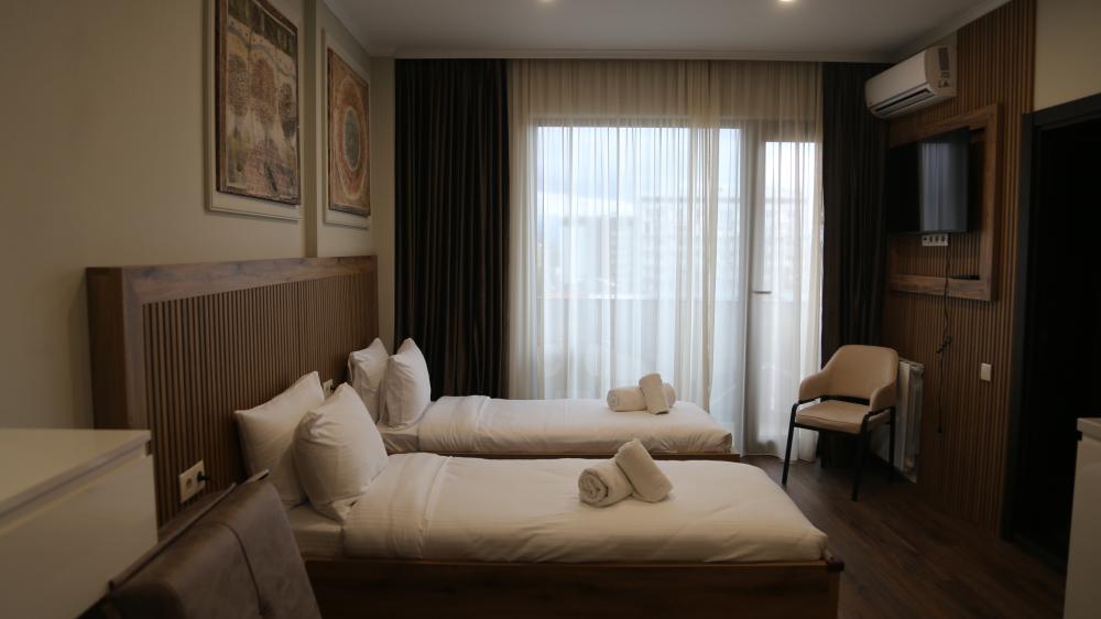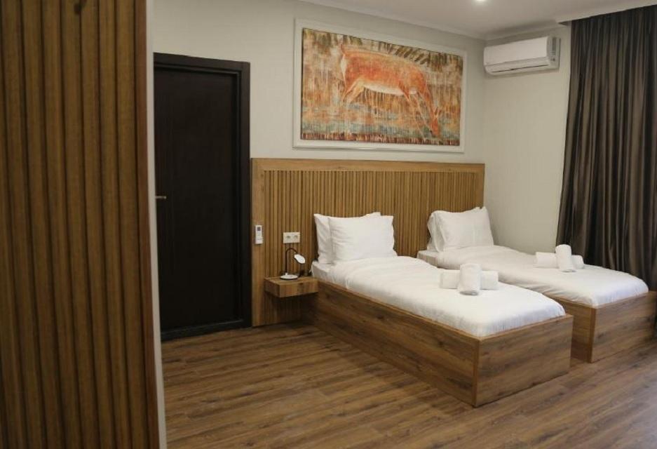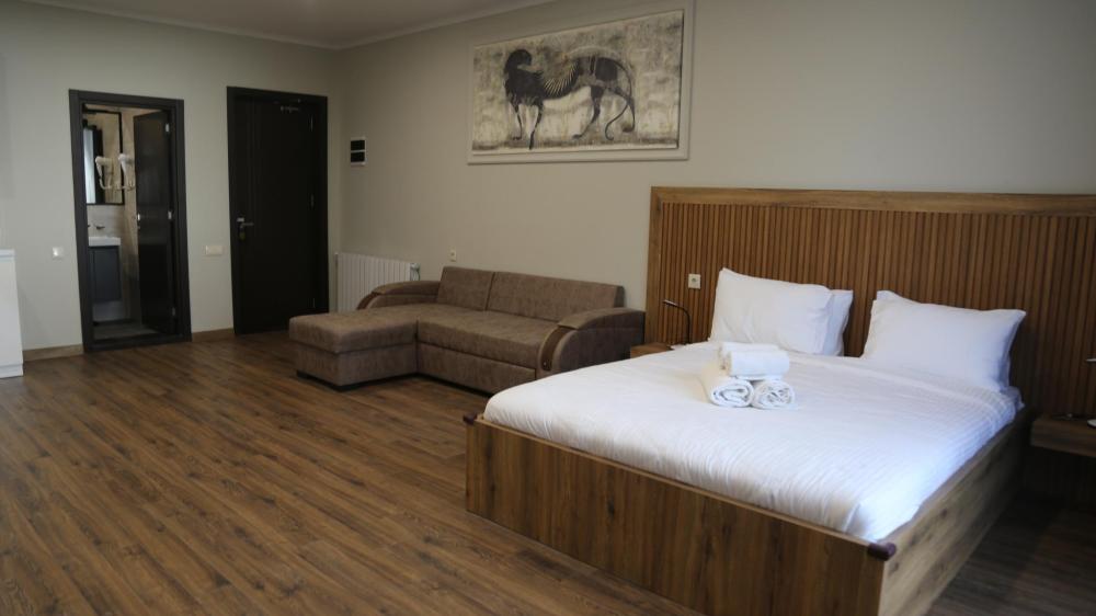 Номер с кондиционером, письменным столом, электрическим чайником, сейфом, телевизором с плоским экраном и собственной ванной комнатой с душем.
