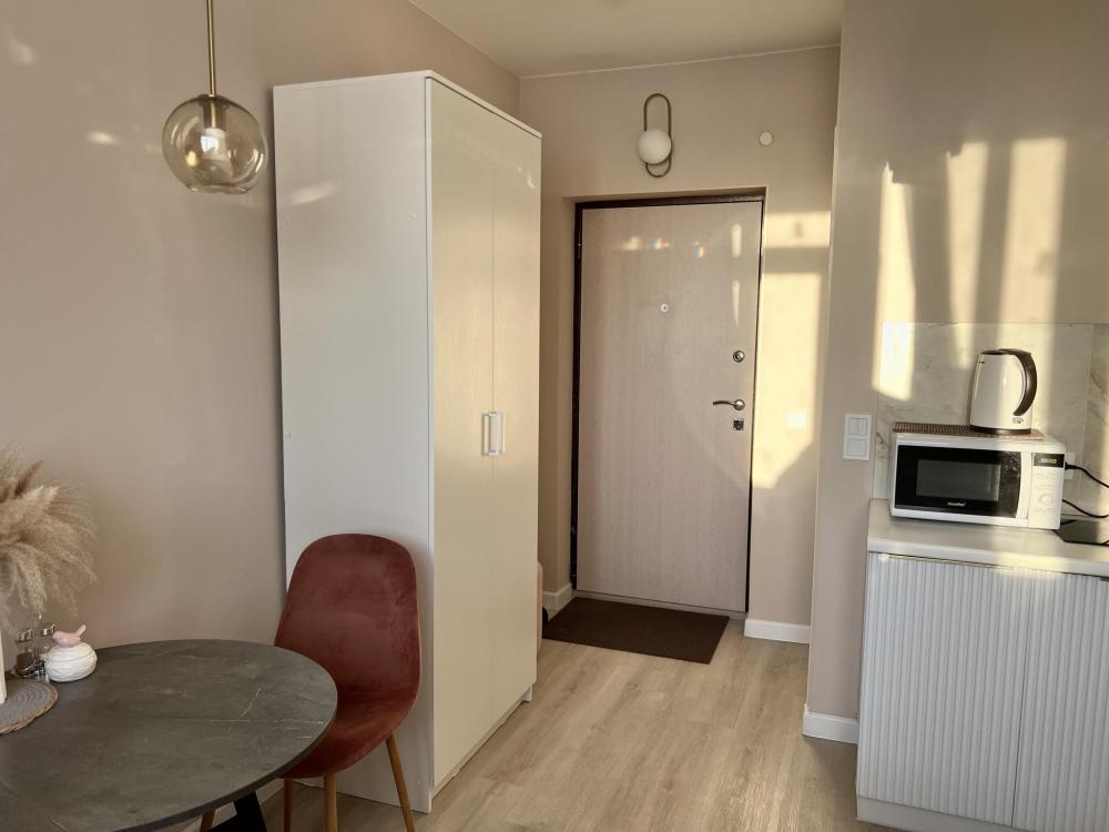 В квартире есть все для комфортного проживания, все в квартире абсолютно новое. Одно спальное место: кровать с ортопедическим матрасом 140х200 Бытовая техника: холодильник, варочная панель, вытяжка, микроволновка, чайник. В студии телевизор со Smart TV, Утюг, фен. Посуда: Есть абсолютно все для приготовления и сервировки.