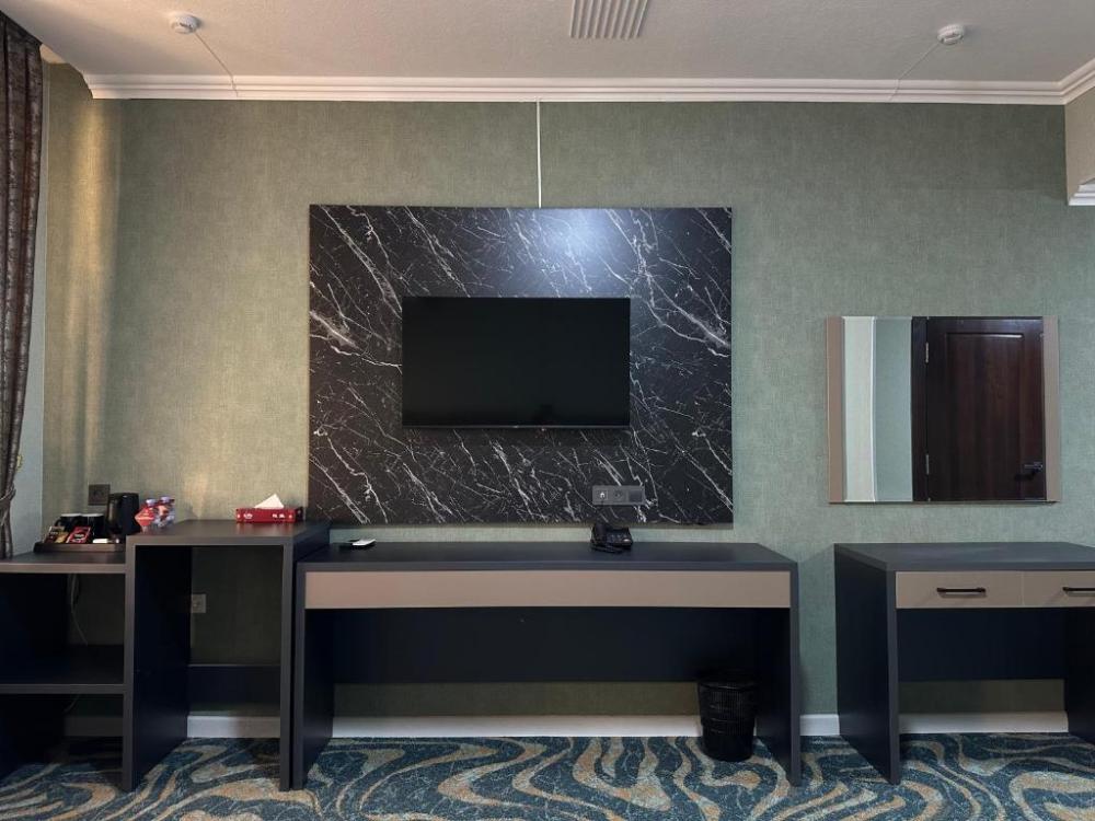Номер с одной двуспальной кроватью. В номере есть шкаф, письменный стол, телефон, кондиционер, фен, холодильник, электрочайник, телевизор.
